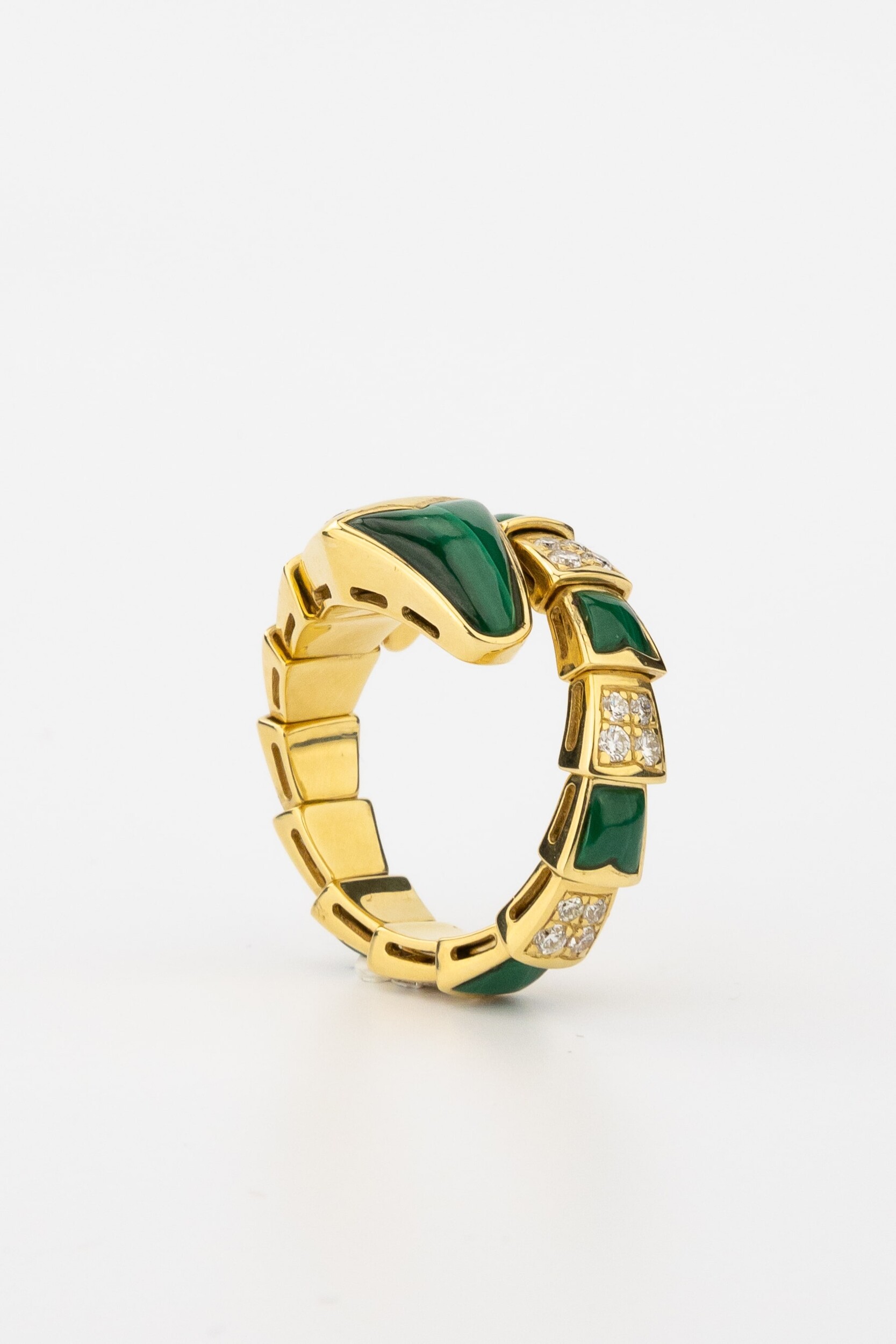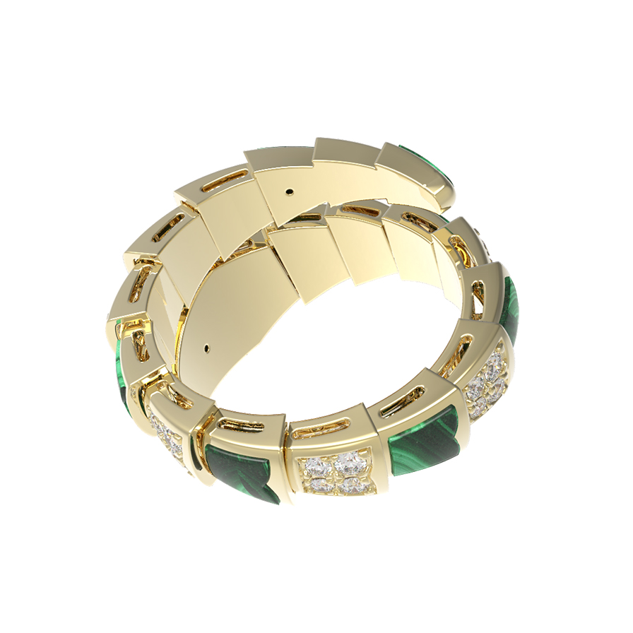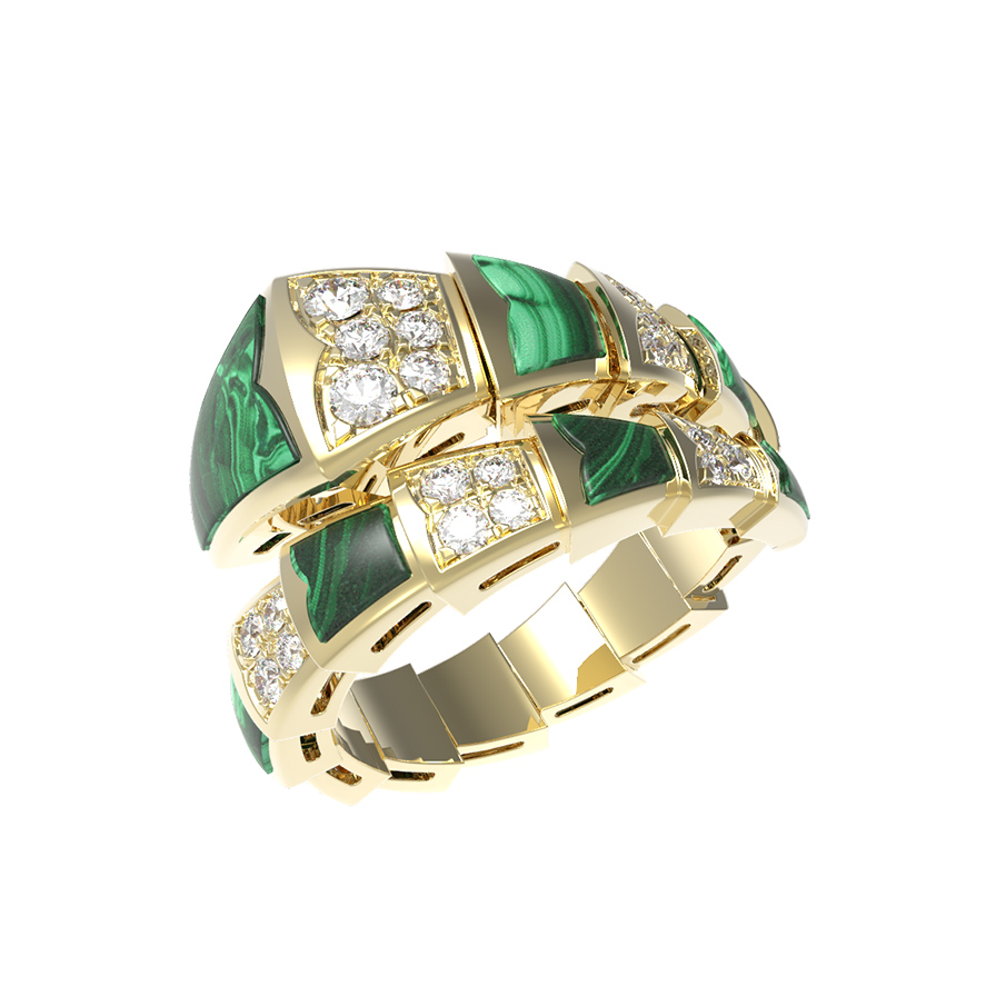 Кольцо из лимонного золота c бриллиантами и малахитом