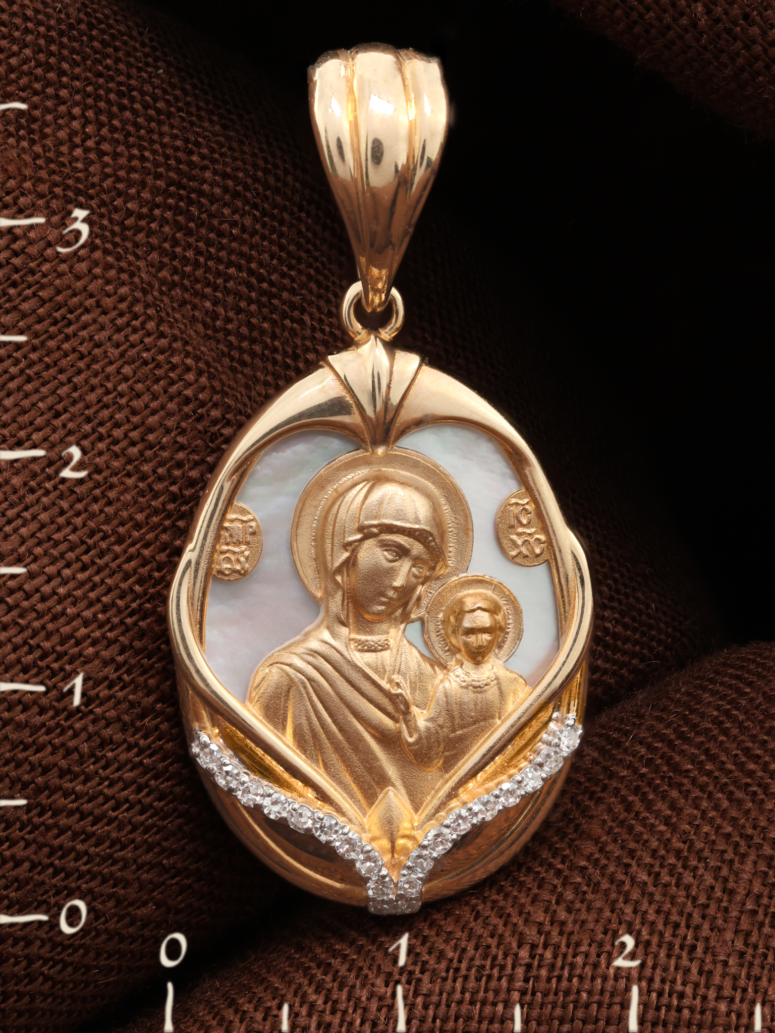 На лицевой стороне образка изображена Казанская икона Божией Матери. Пресвятая Богородица — милосердная заступница, просительница за нас перед Богом. Ее благодатная помощь изливается на нас по молитвам у ее чудотворных икон. Казанская икона явилась в 1579 году в Казани, вскоре после взятия Казанского царства у татар Иоанном Грозным. Этот образ Богородицы не раз сопровождал русский народ в бедствиях. Икона Божией Матери Казанская вдохновляла русских ратников в период Смутного времени при освобождении Москвы от поляков. Перед Казанской иконой в 1709 году, накануне Полтавской победы, император Петр I молился о даровании победы русскому войску. В 1812 году накануне отъезда в действующую армию перед чудотворной иконой Божией Матери молился князь Михаил Кутузов. Не только государственным мужам и дружинам указывала путь икона — по доброй традиции именно этой иконой благословляют на брак молодых родители, длинным списком чудес сопровождается этот образ Богоматери — один из самых любимых на Руси. Существует множество древних списков с этой удивительной иконы.