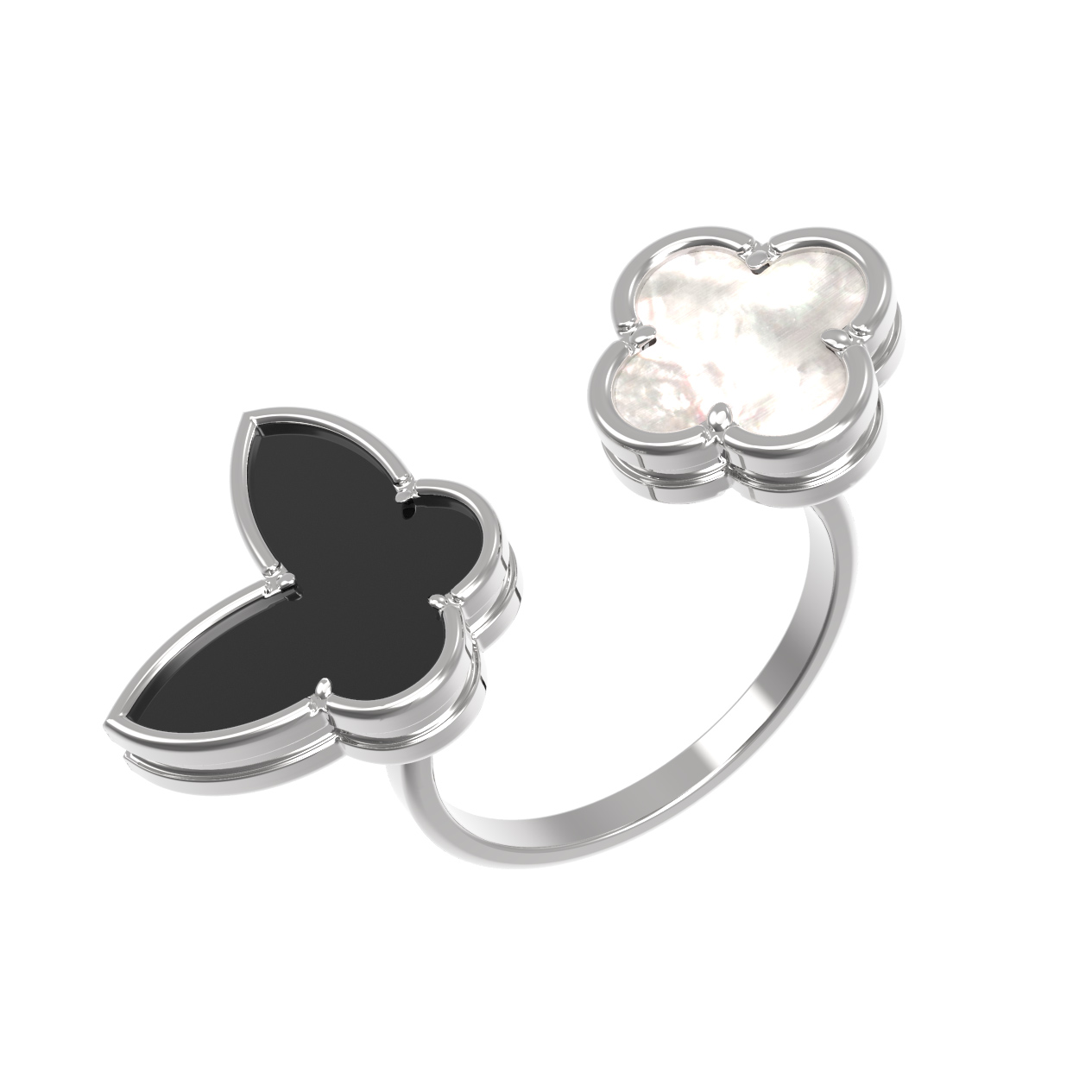 Кольцо из белого золота c ониксом и перламутром