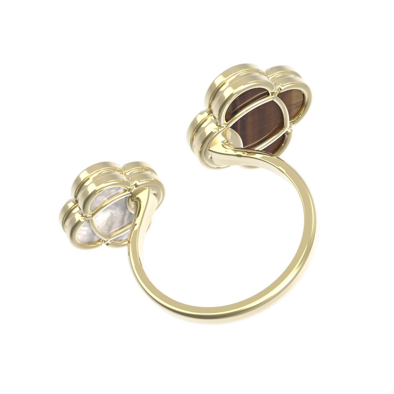 Кольцо из лимонного золота c тигровым глазом и перламутром
