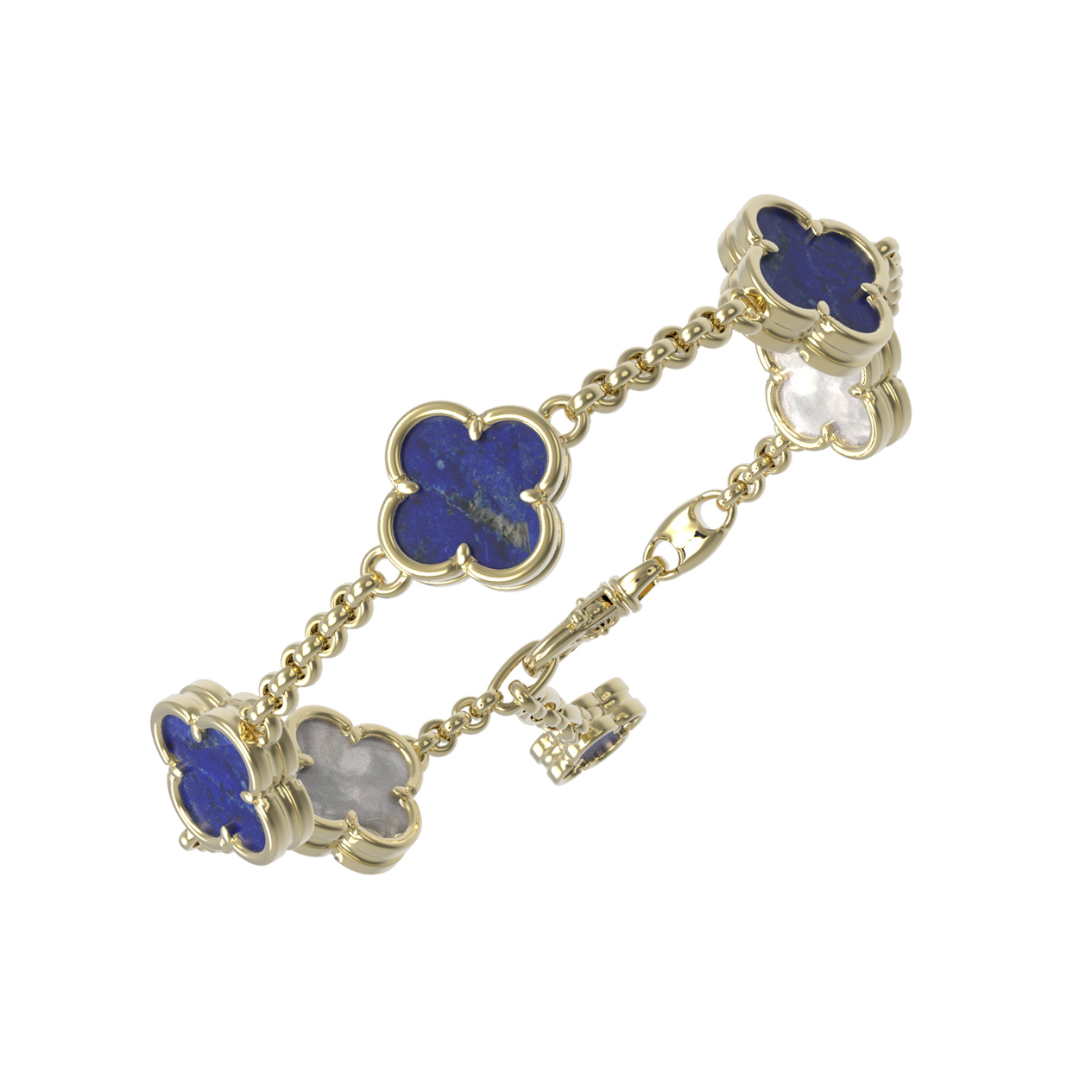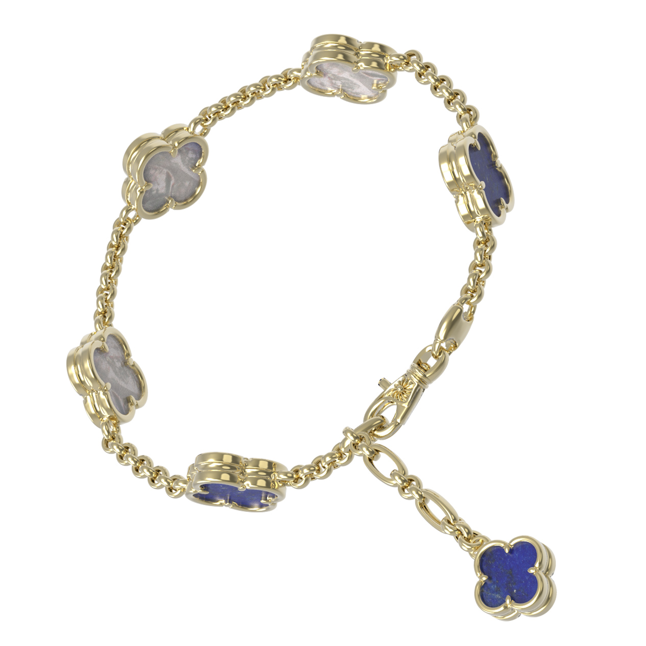Браслет из лимонного золота c лазуритом и перламутром