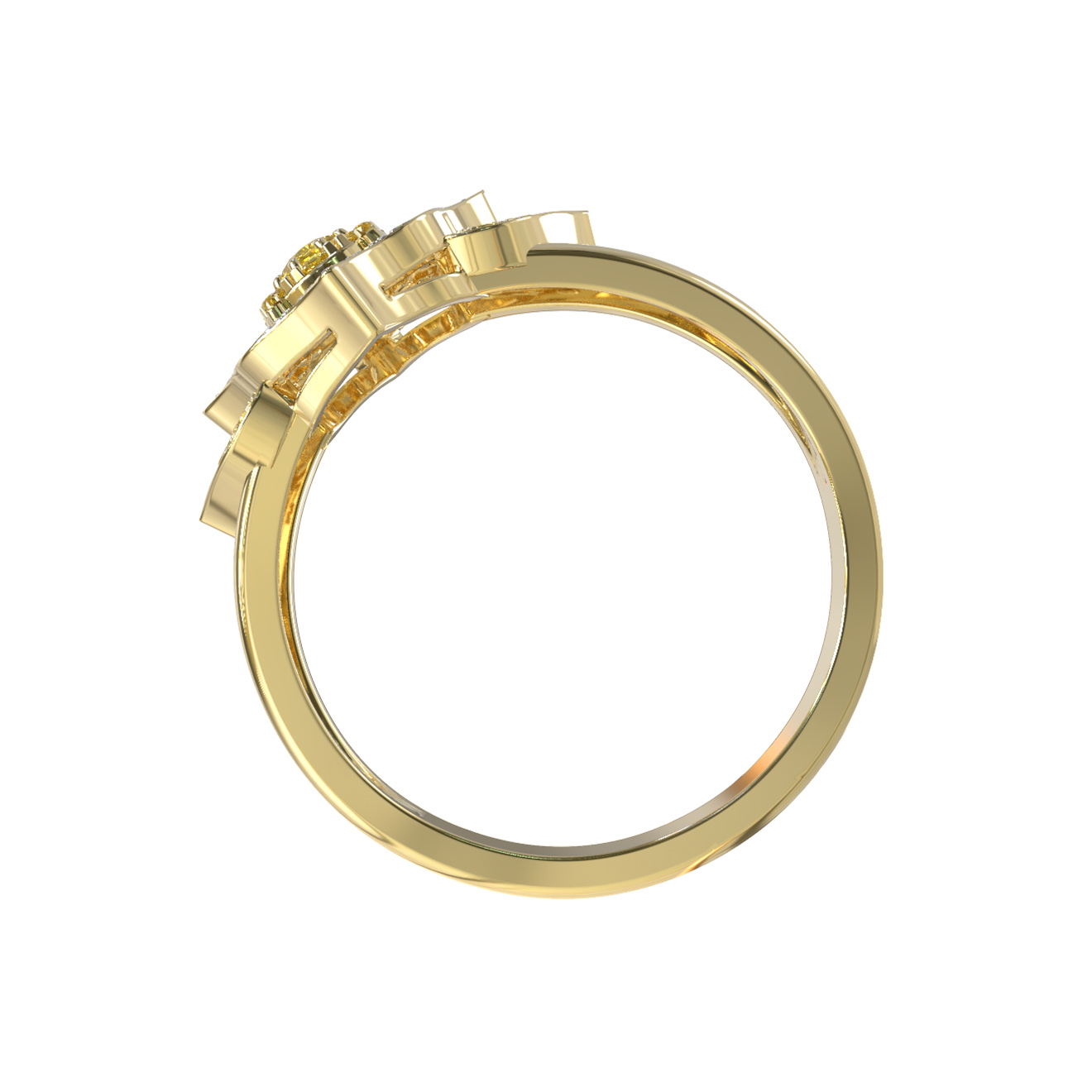 Кольцо из лимонного золота c бриллиантами и сапфиром