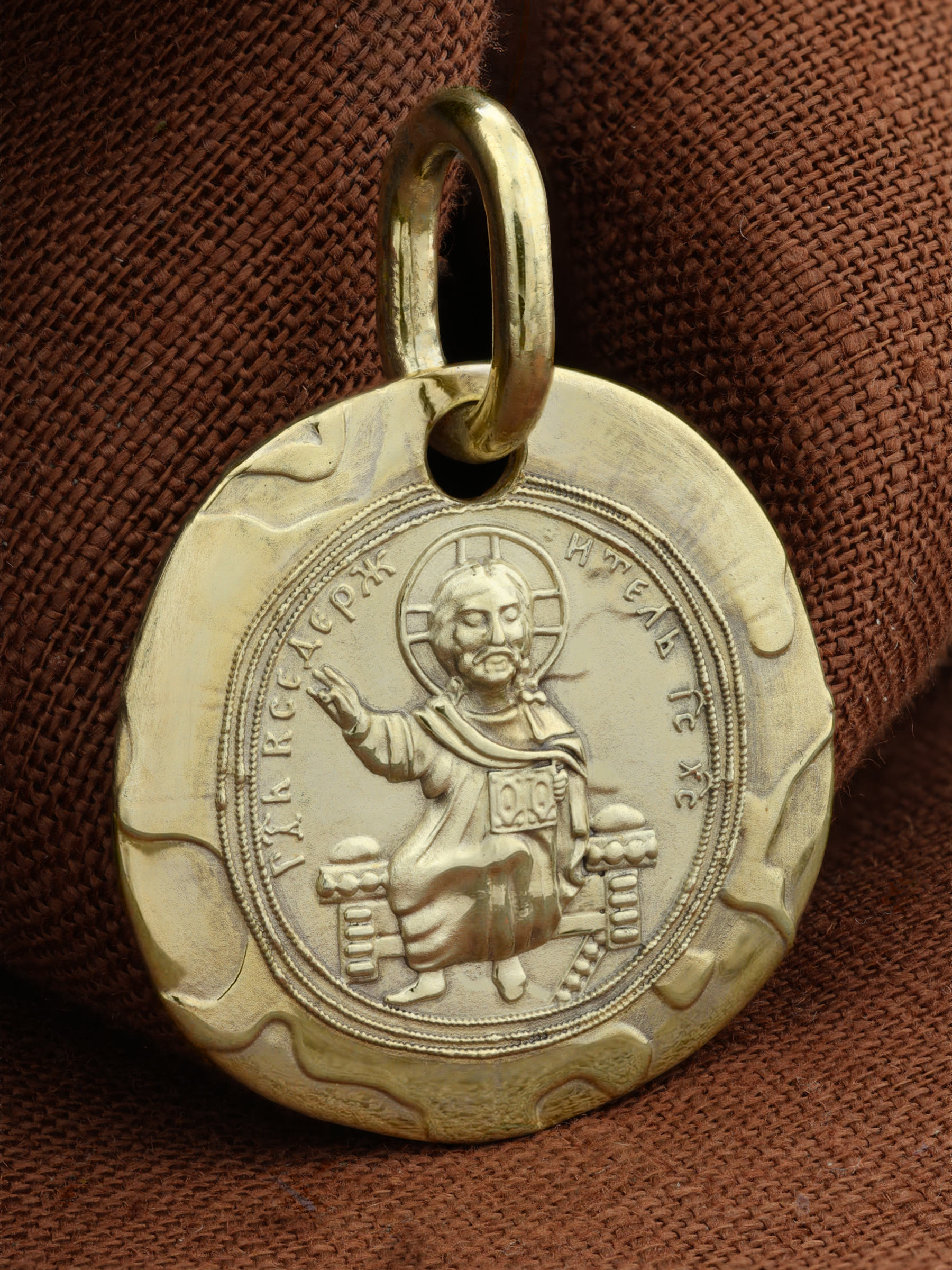 На лицевой стороне образка размещен образ Господа и Спасителя нашего Иисуса Христа — Господь Вседержитель или Пантократор (от греч. всевластный, всесильный). Он представлен как Царь Небесный и будущий Судия мира. Именование Иисуса «Вседержителем» указывает, с одной стороны, на Его Божественную природу: «Аз есмь Альфа и Омега, начало и конец, говорит Господь, Который есть и был и грядет, Вседержитель» (Откр. 1: 8). С другой стороны, такое именование связано и с человеческой природой Христа, искупившего крестной жертвой людские грехи и обновившего тем самым человеческую природу. Правой рукой Он благословляет, а левой держит Книгу. Она символизирует Евангелие — благую весть, принесенную Христом всему миру, а также и Книгу Жизни, где записаны имена всех, возлюбивших Бога. Указывая на раскрытое Евангелие и одновременно благословляя, Иисус недвусмысленно указывает нам путь к спасению души