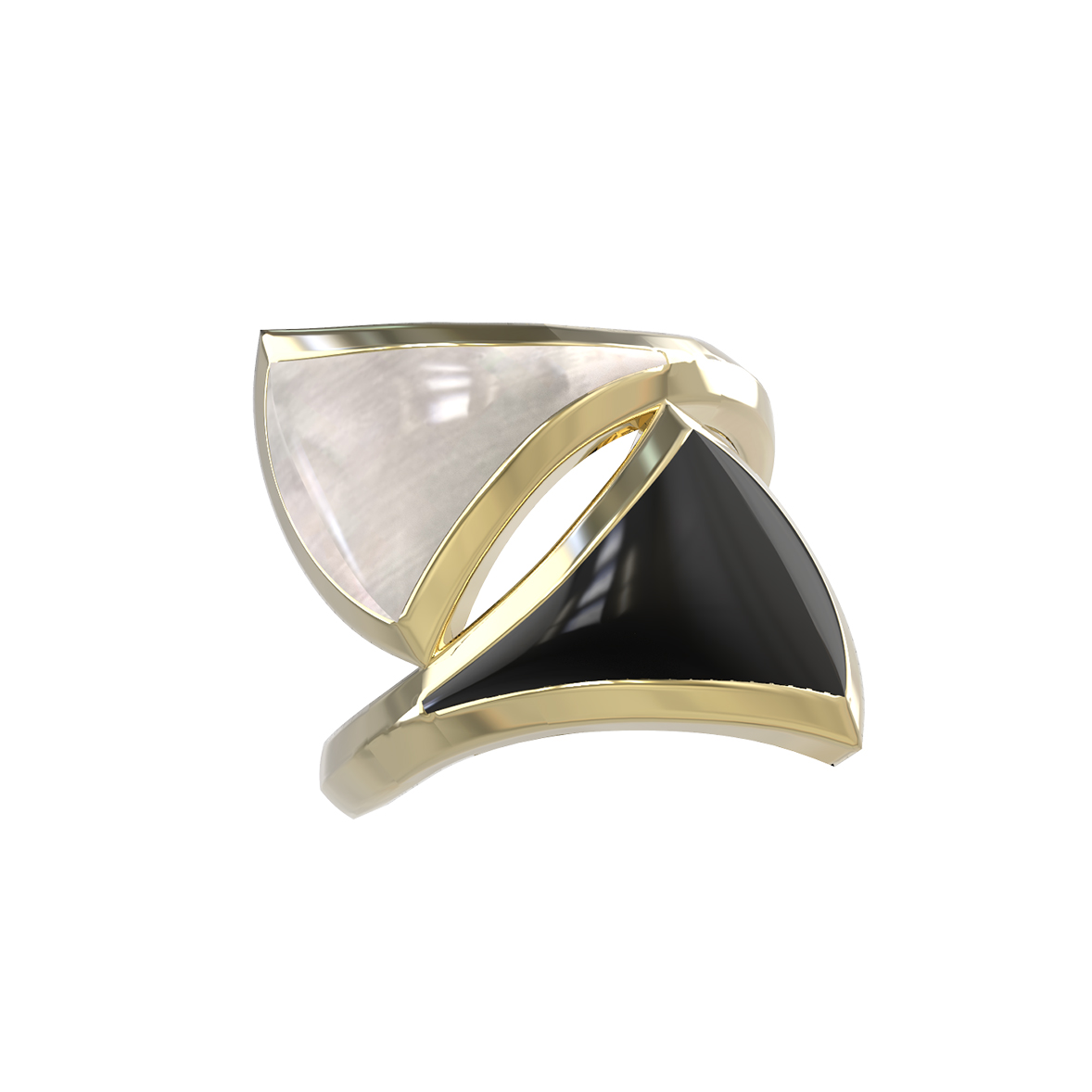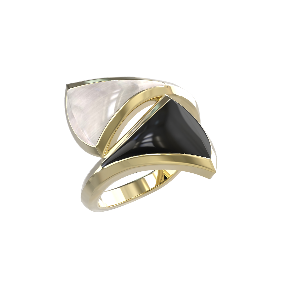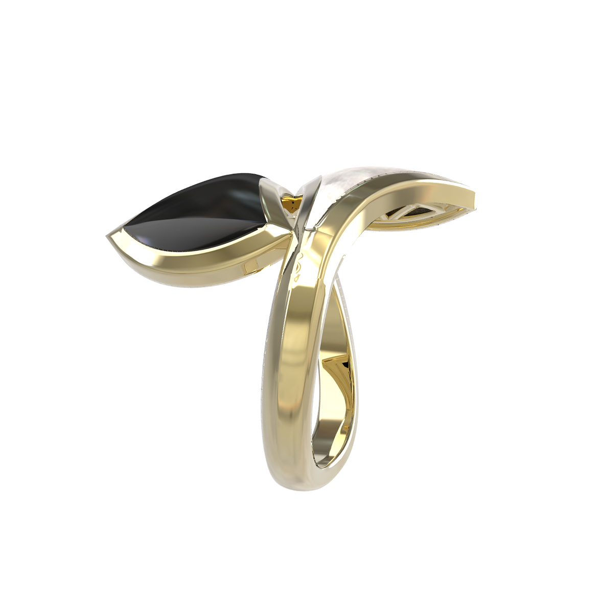 Кольцо из лимонного золота c ониксом и перламутром