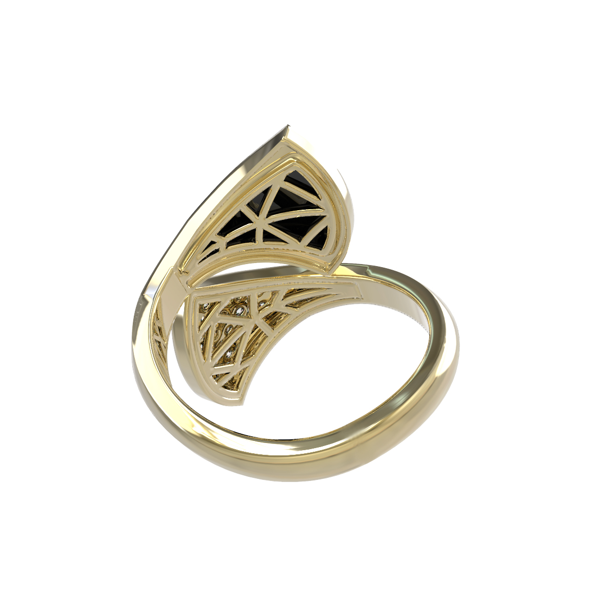 Кольцо из лимонного золота c бриллиантами и ониксом