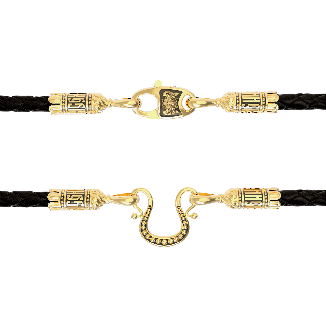 Шнурок кожаный из лимонного золота c кожаным шнурком