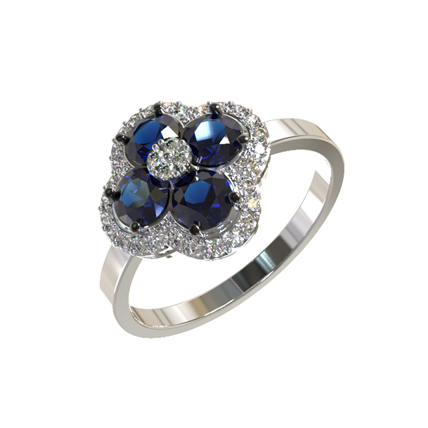 Кольцо из белого золота c бриллиантами и сапфиром