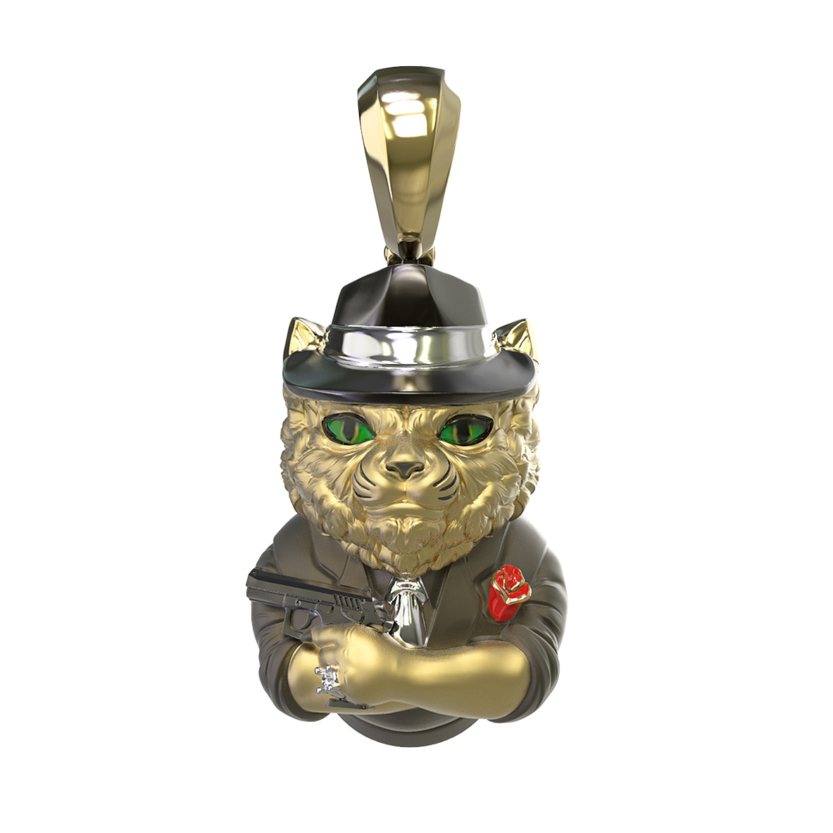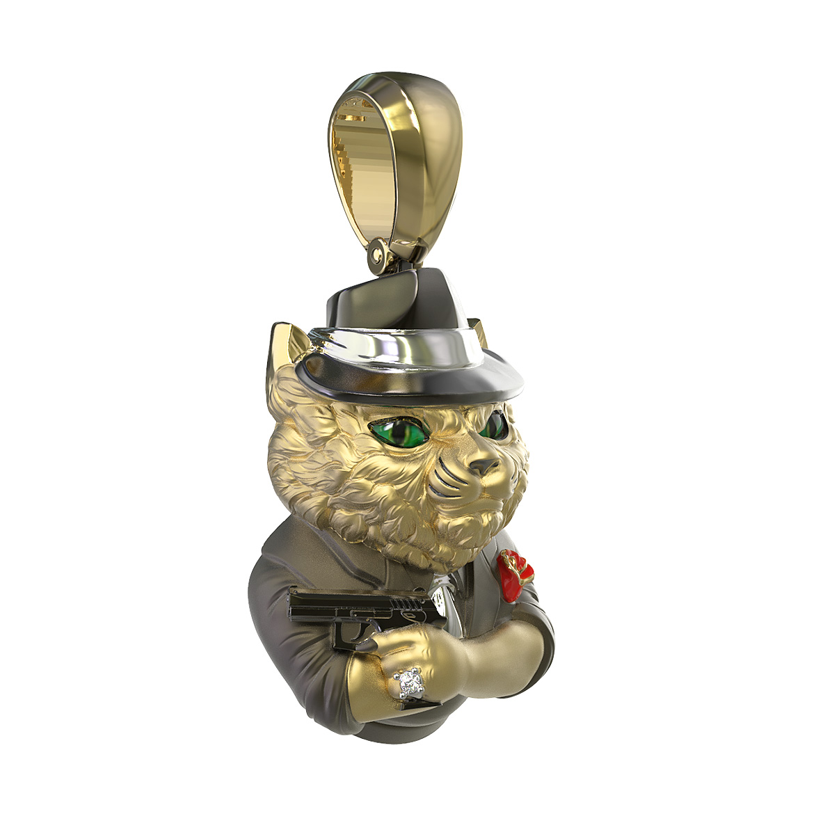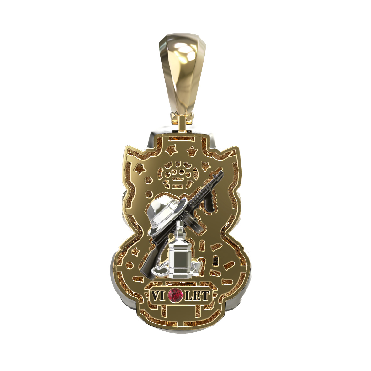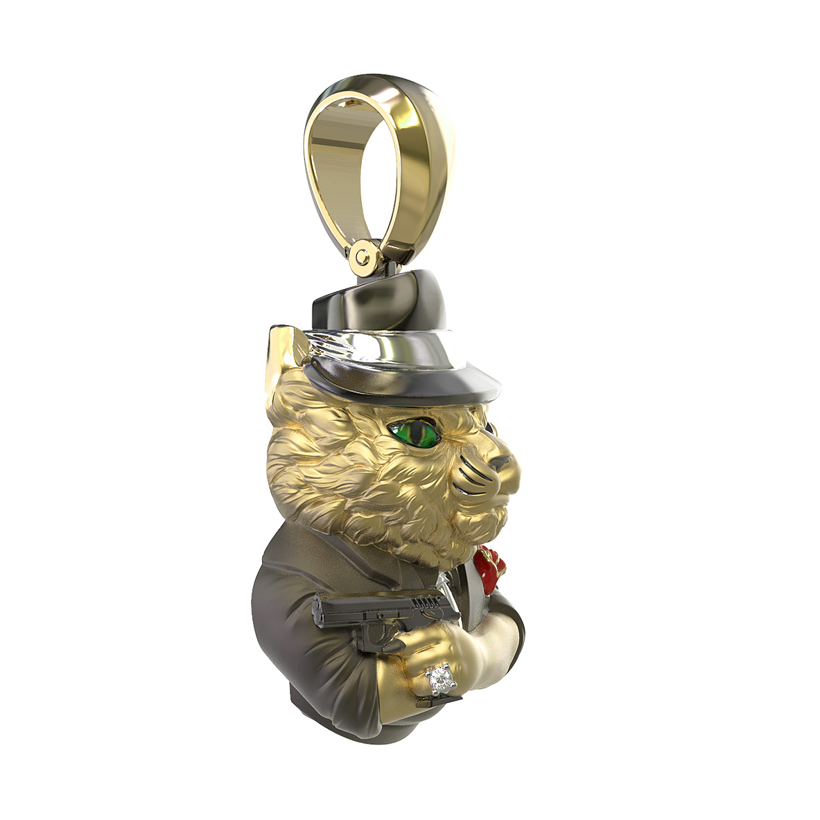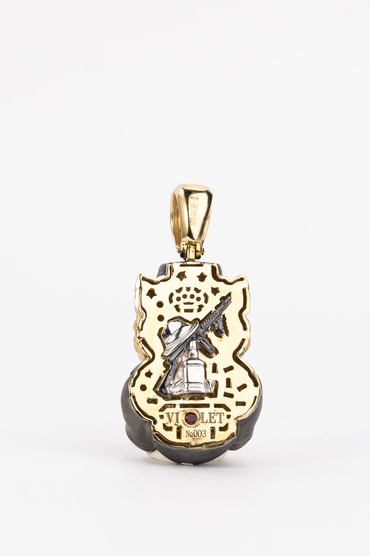Подвеска из лимонного золота c эмаль, бриллиантами и рубином