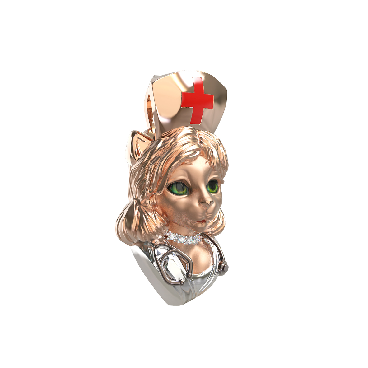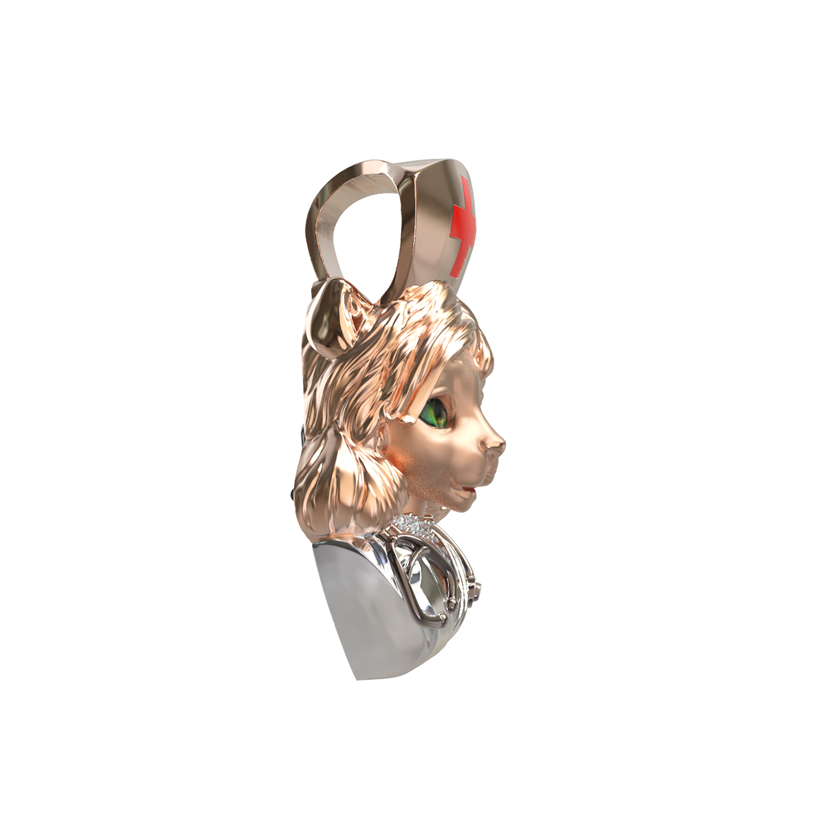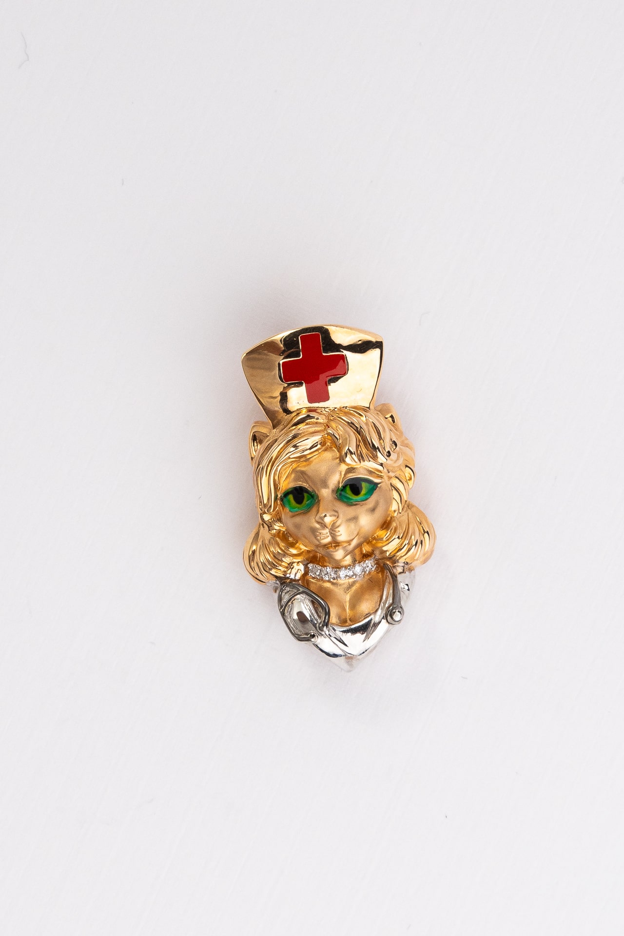 Подвеска из золота c эмаль, бриллиантами и рубином