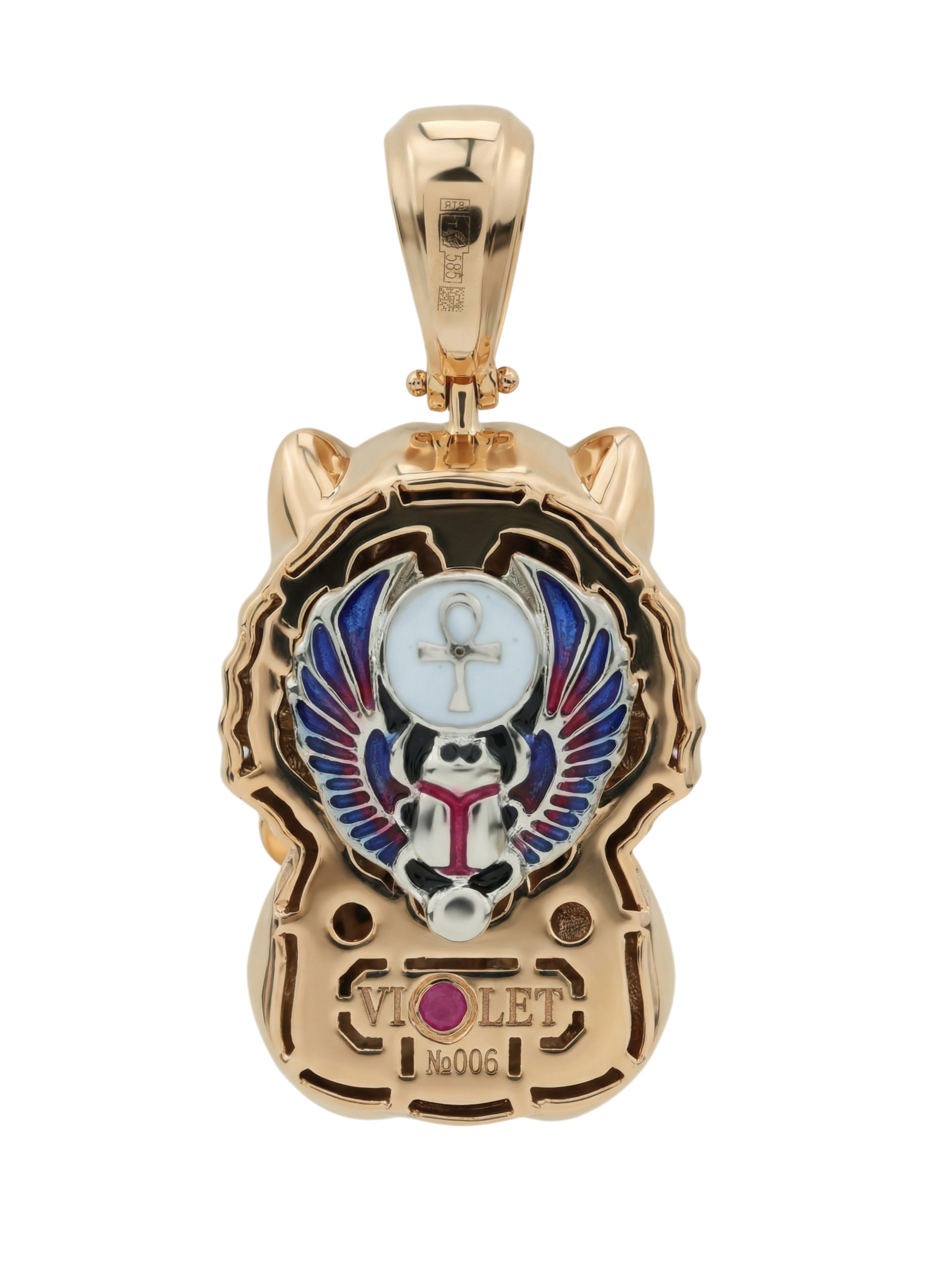 Подвеска из золота c эмаль, бриллиантами и рубином