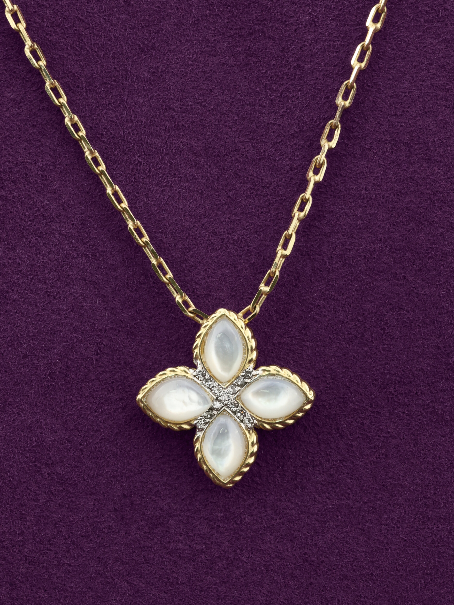 Колье из лимонного золота c бриллиантами и перламутром