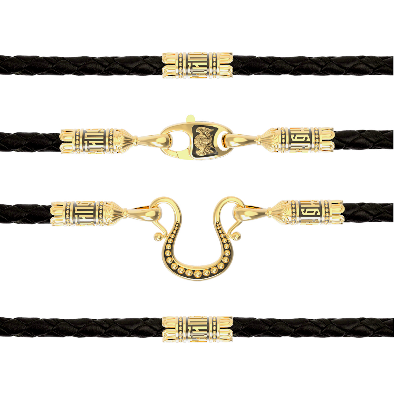 Шнурок кожаный из лимонного золота c кожаным шнурком