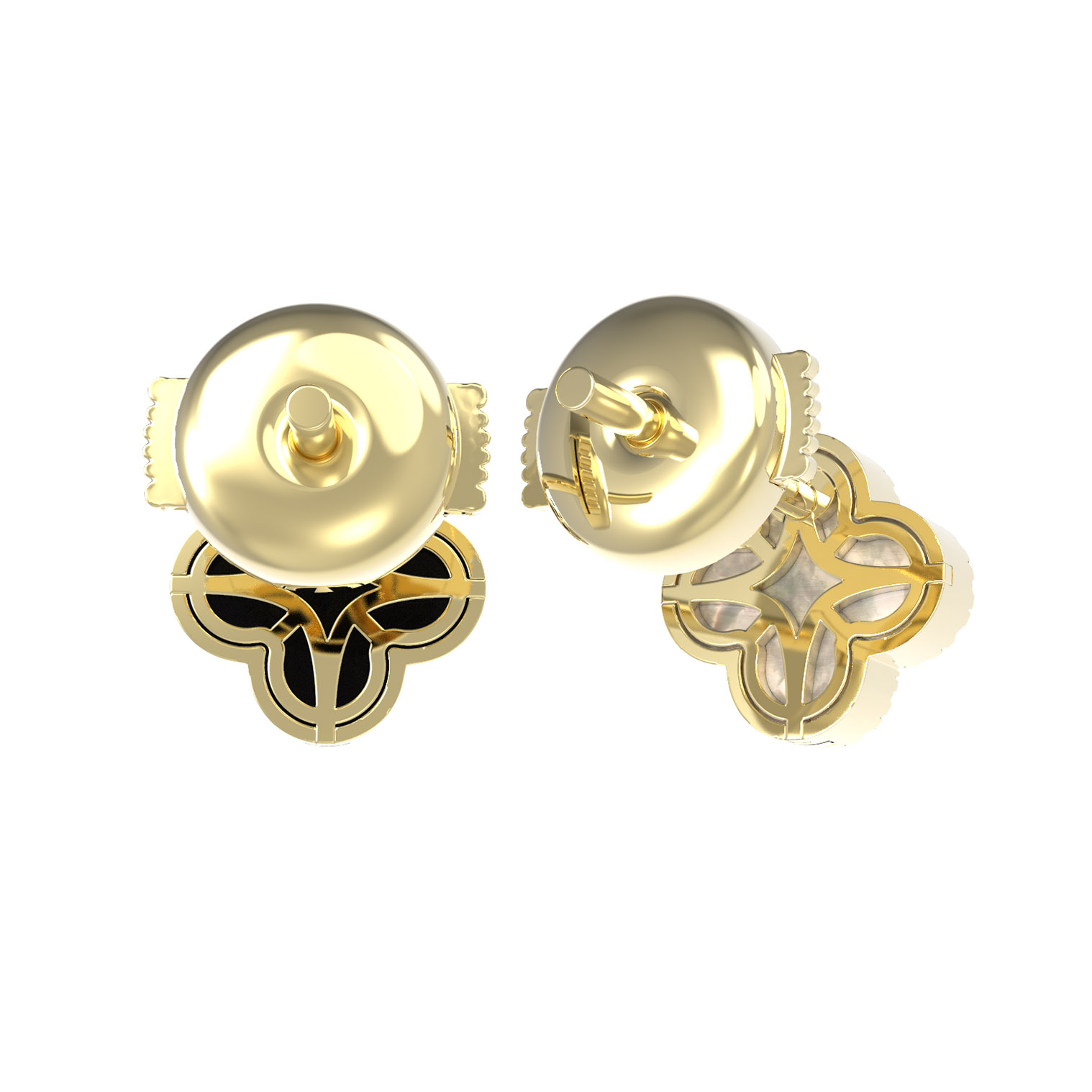 Серьги из лимонного золота c бриллиантами, ониксом и перламутром