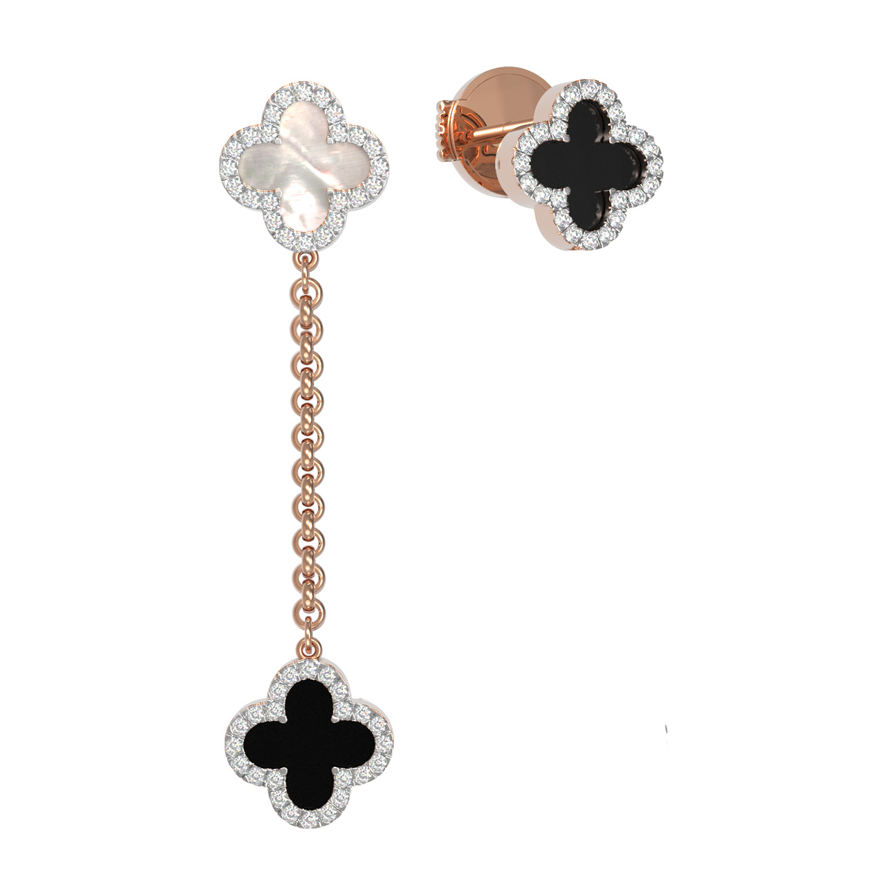 Серьги из золота c бриллиантами, ониксом и перламутром