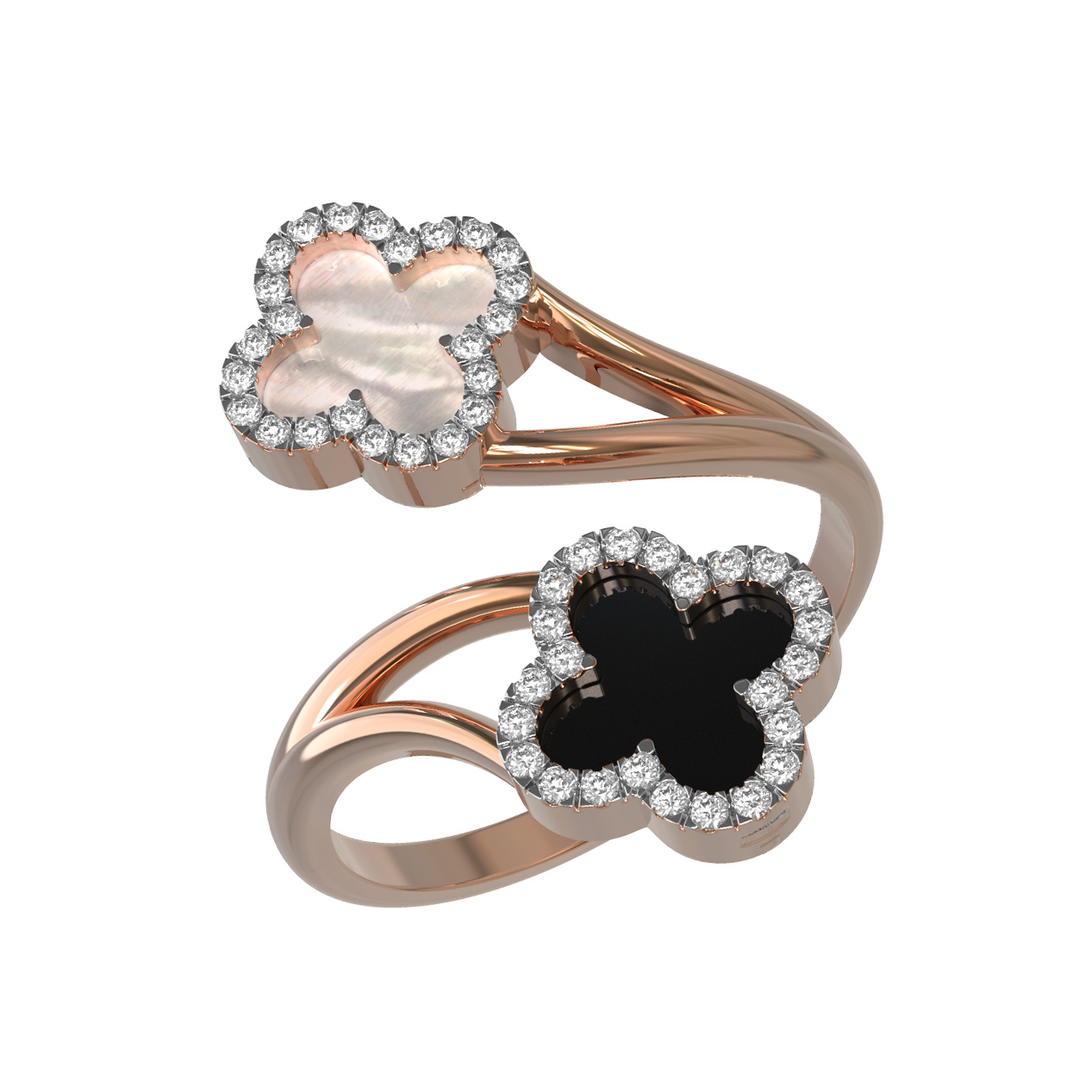 Кольцо из золота c бриллиантами, ониксом и перламутром
