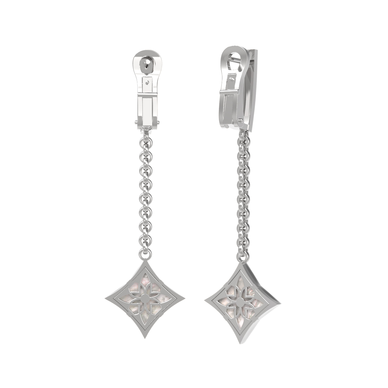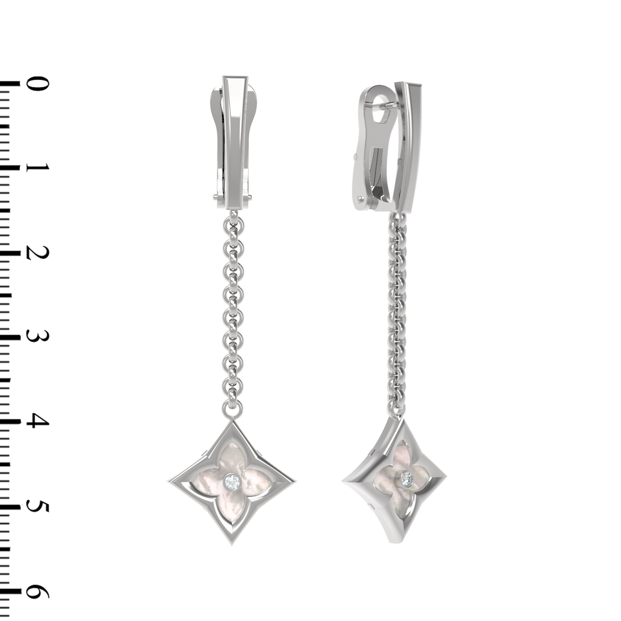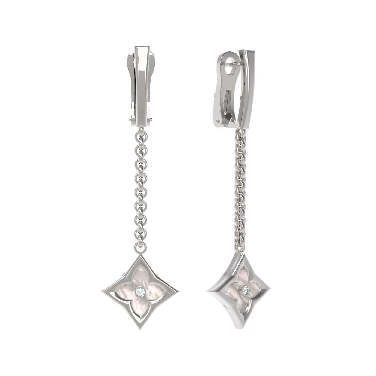 Серьги из белого золота c бриллиантами и перламутром