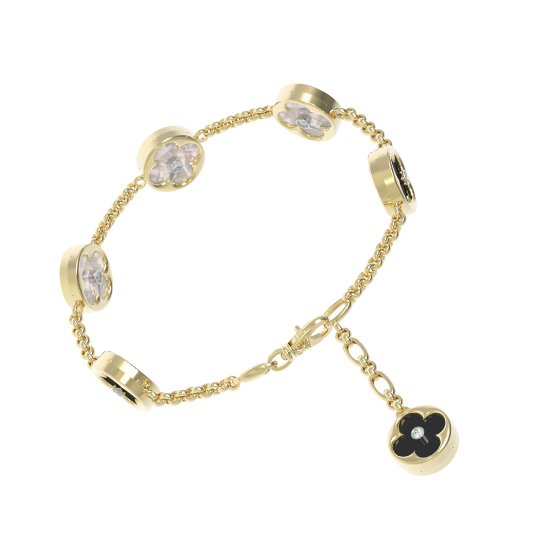 Браслет из лимонного золота c бриллиантами, ониксом и перламутром