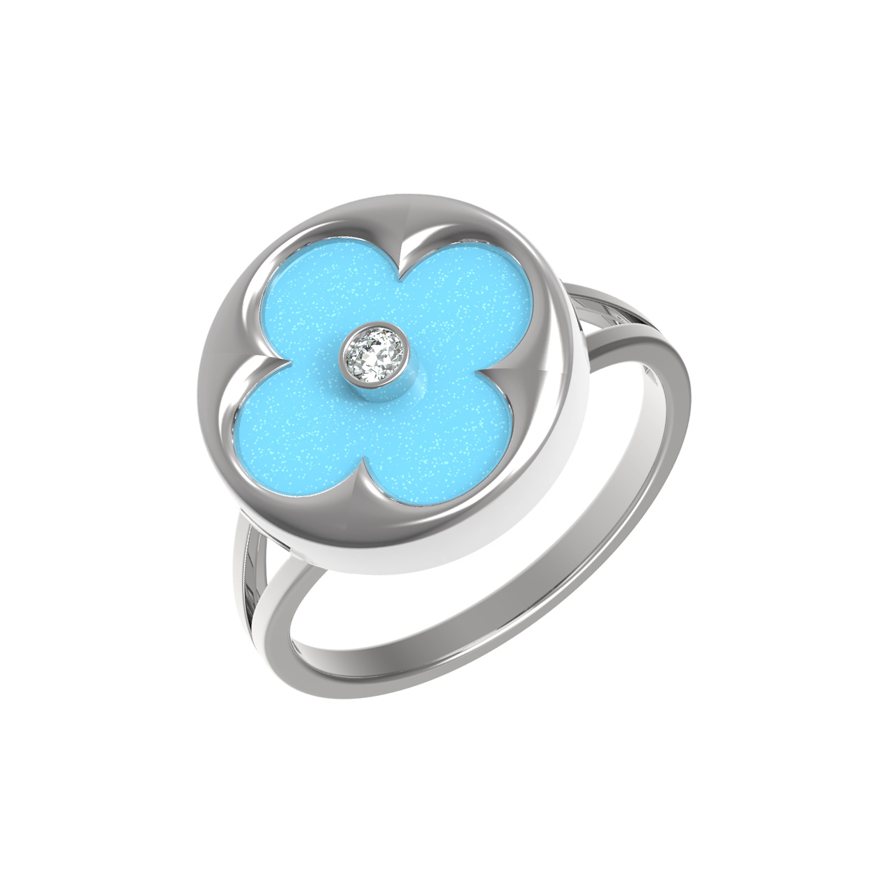 Кольцо из белого золота c бриллиантами и бирюзой