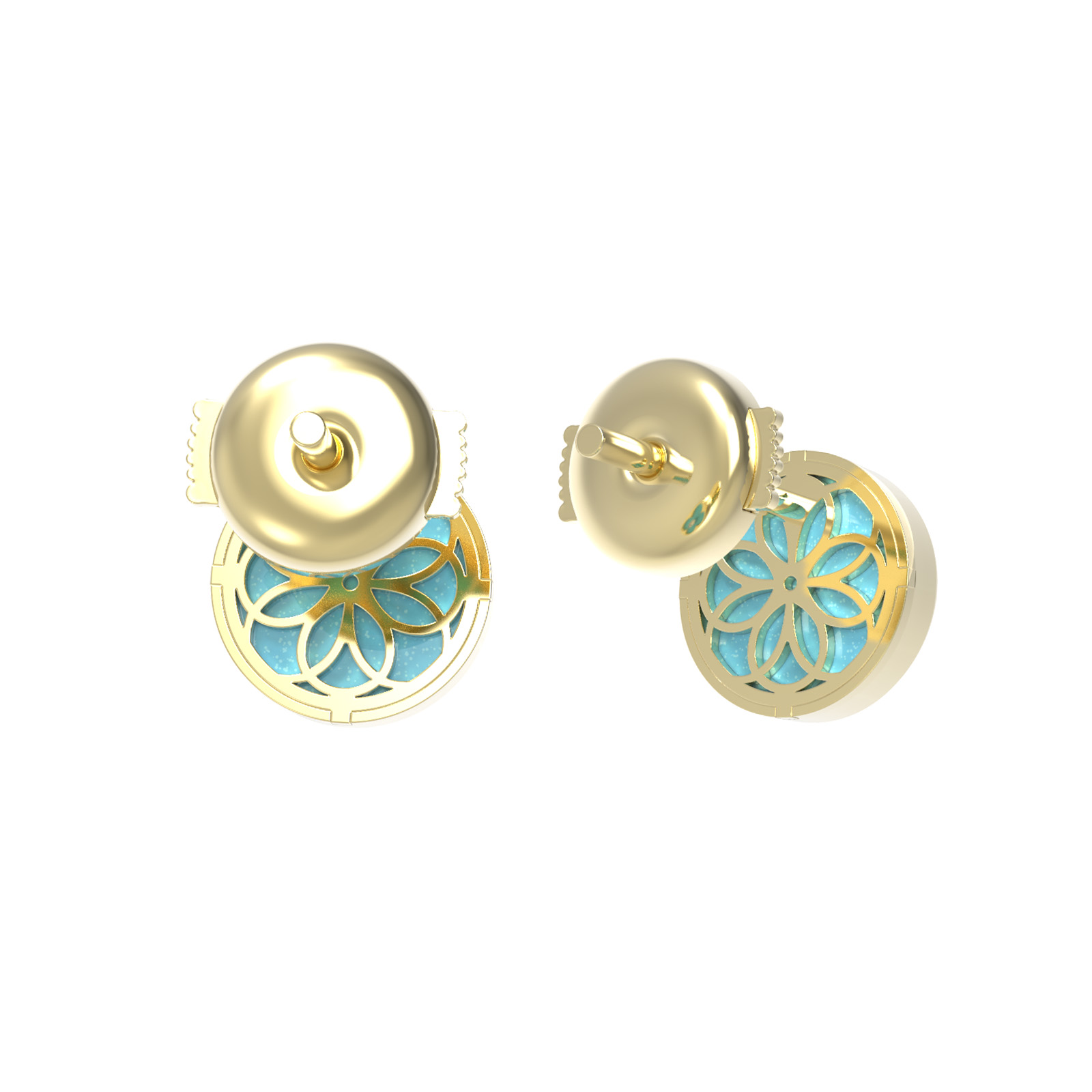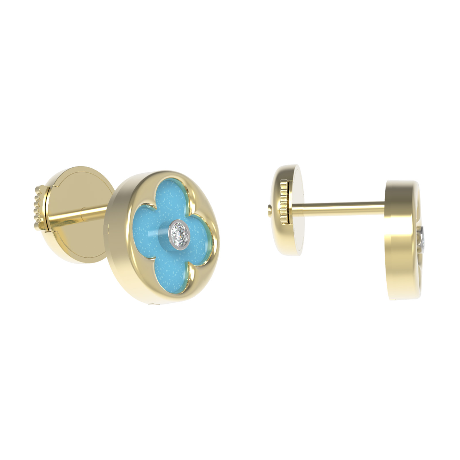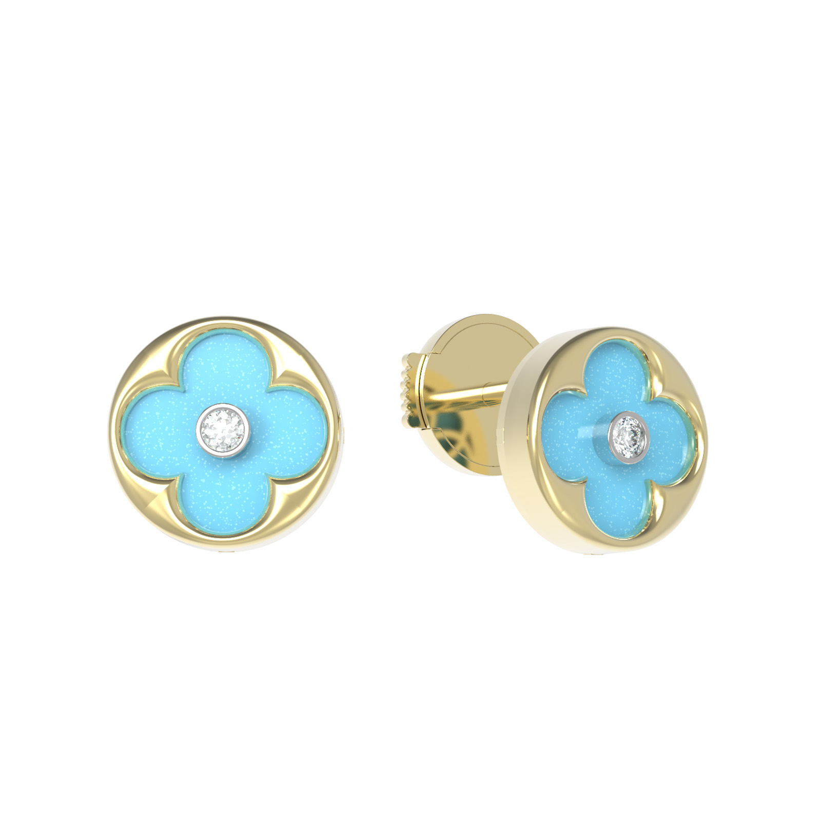 Серьги из лимонного золота c бриллиантами и бирюзой