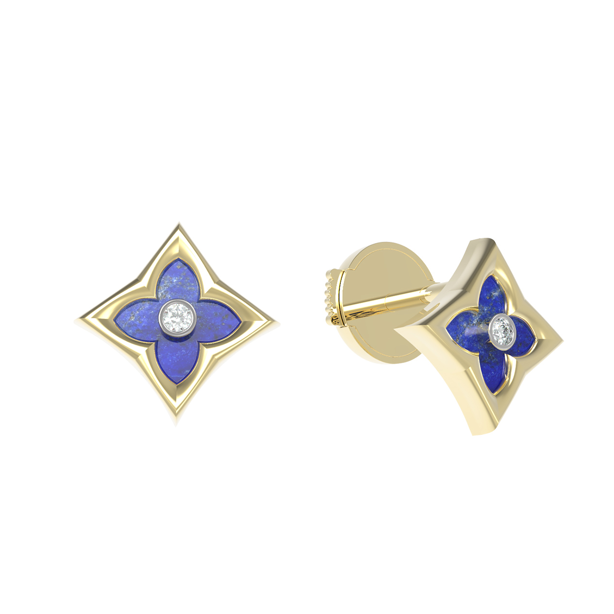 Серьги из лимонного золота c бриллиантами и лазуритом