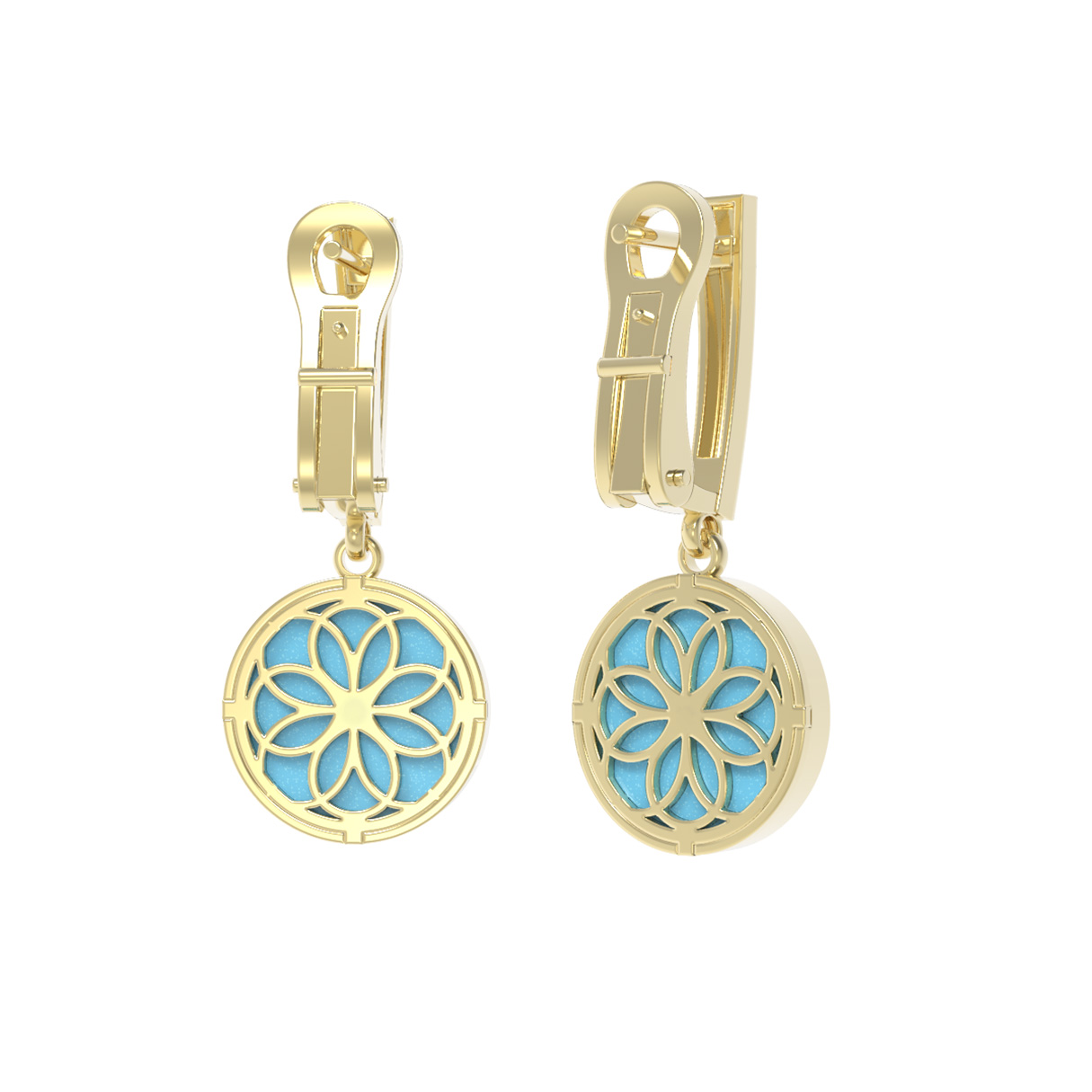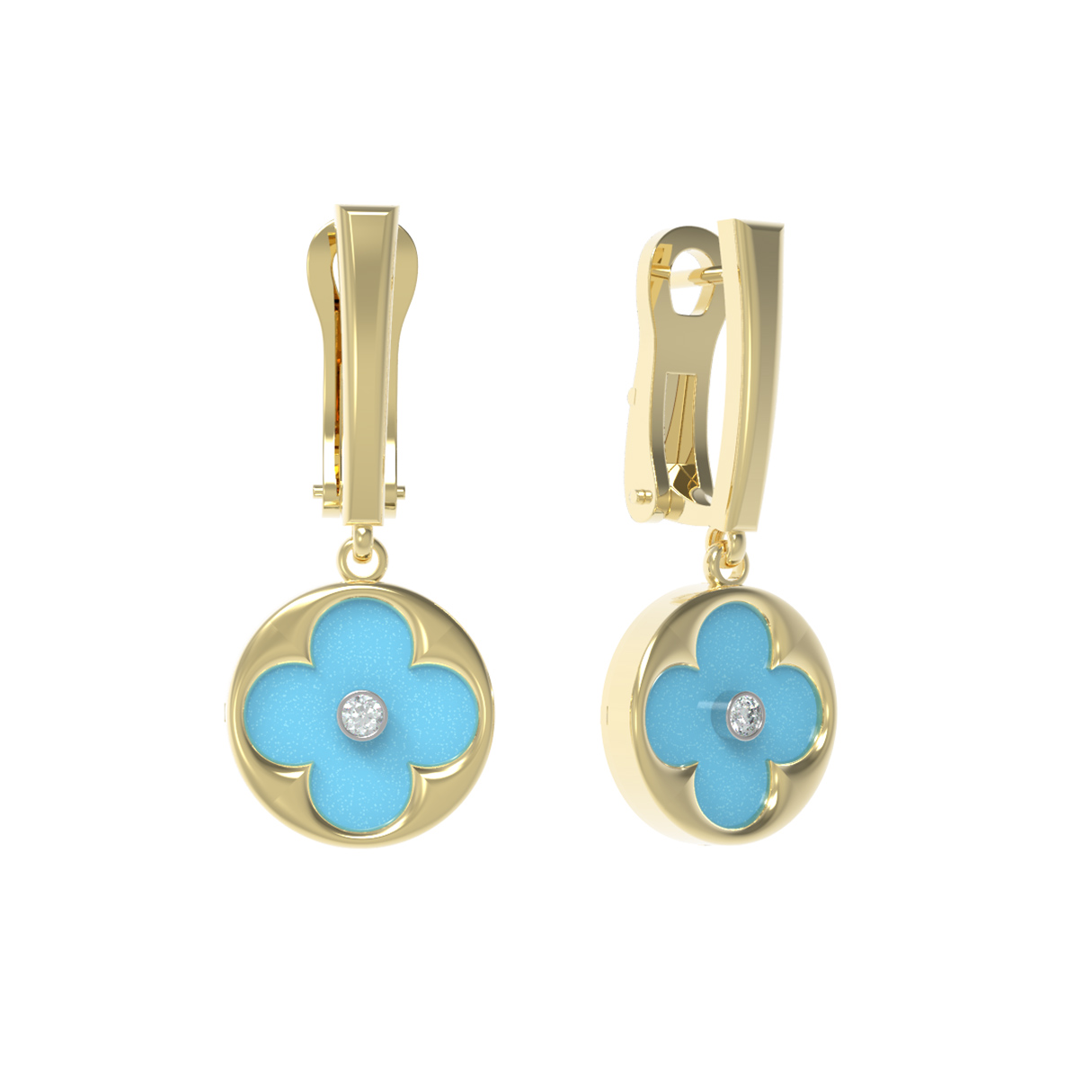 Серьги из лимонного золота c бриллиантами и бирюзой