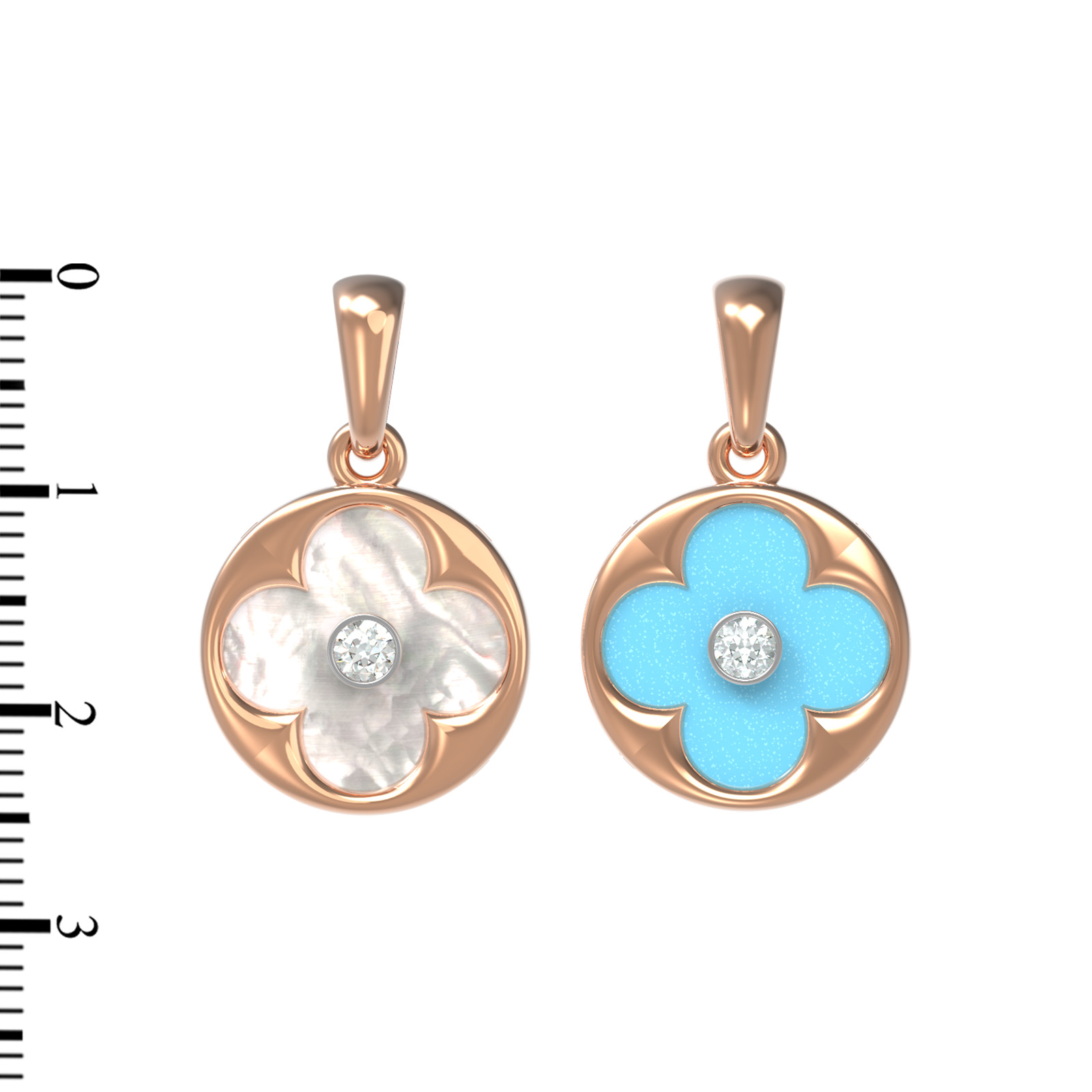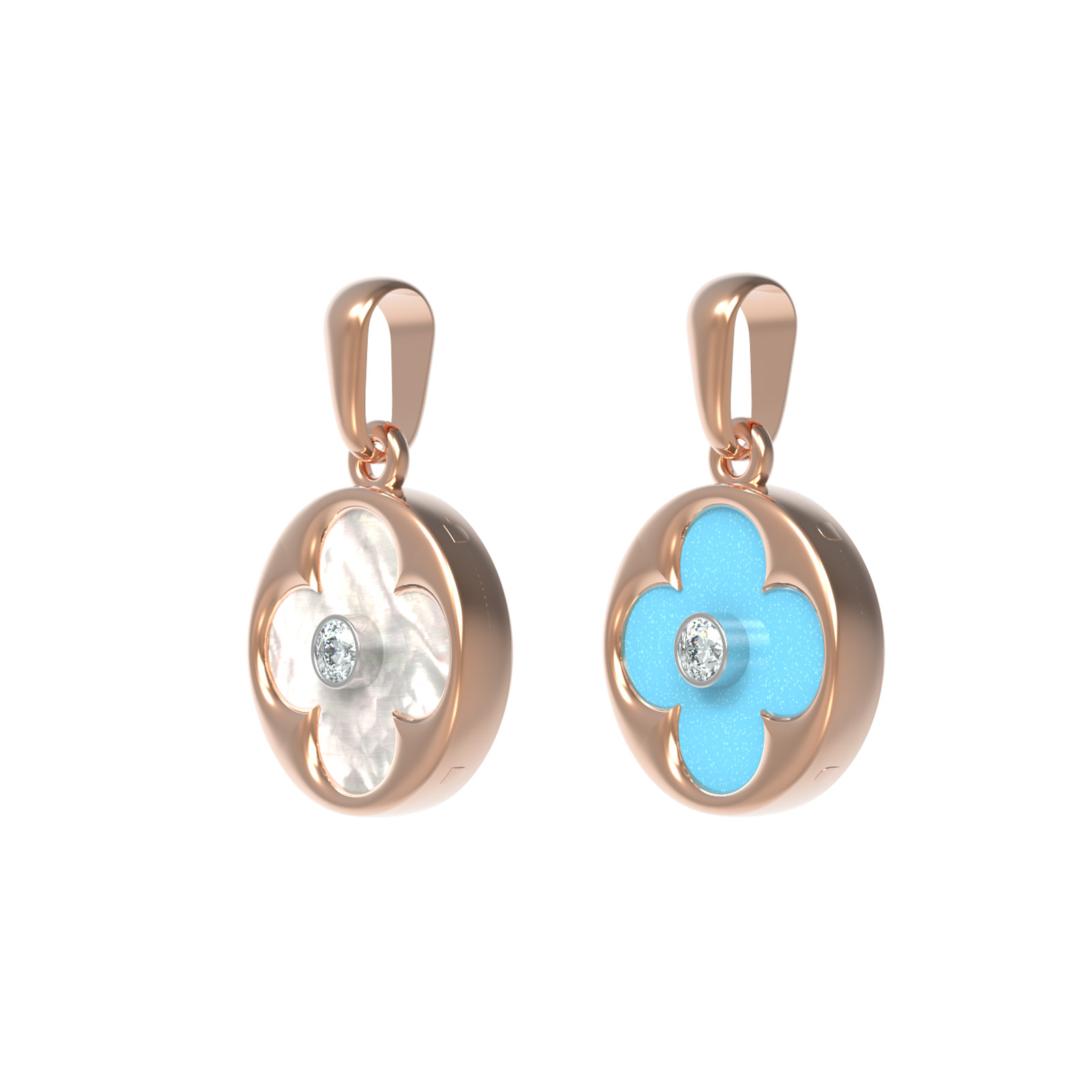 Подвеска из золота c бриллиантами, бирюзой и перламутром