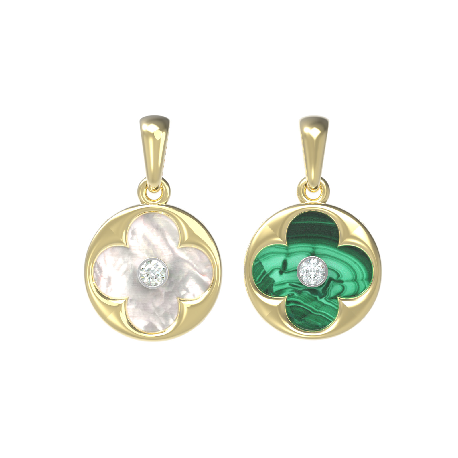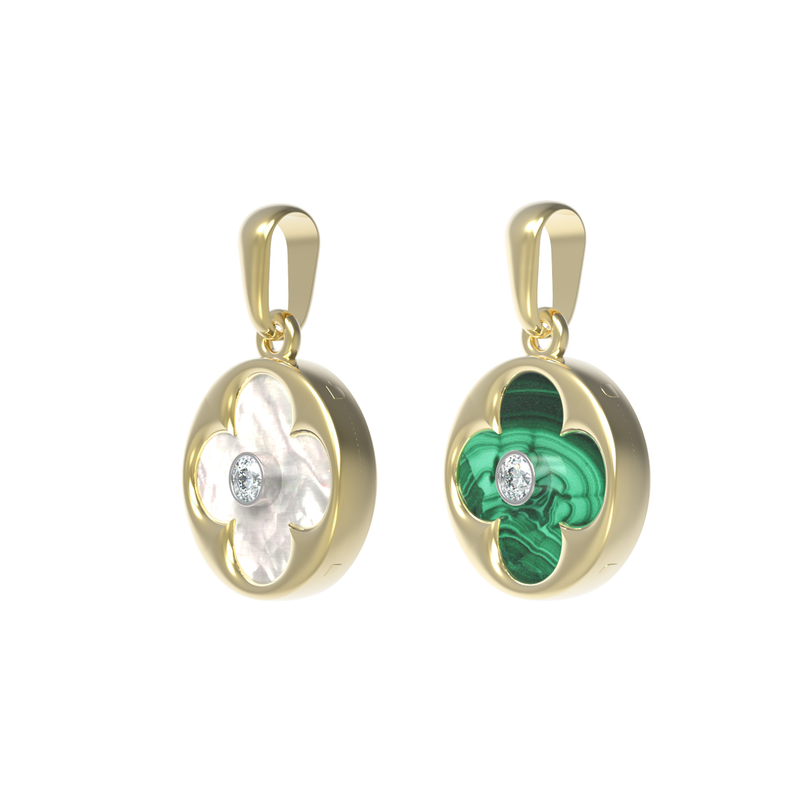 Подвеска из лимонного золота c бриллиантами, малахитом и перламутром