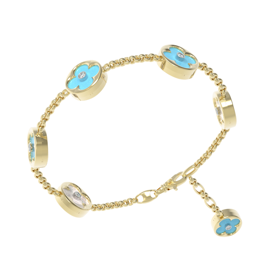 Браслет из лимонного золота c бриллиантами, бирюзой и перламутром