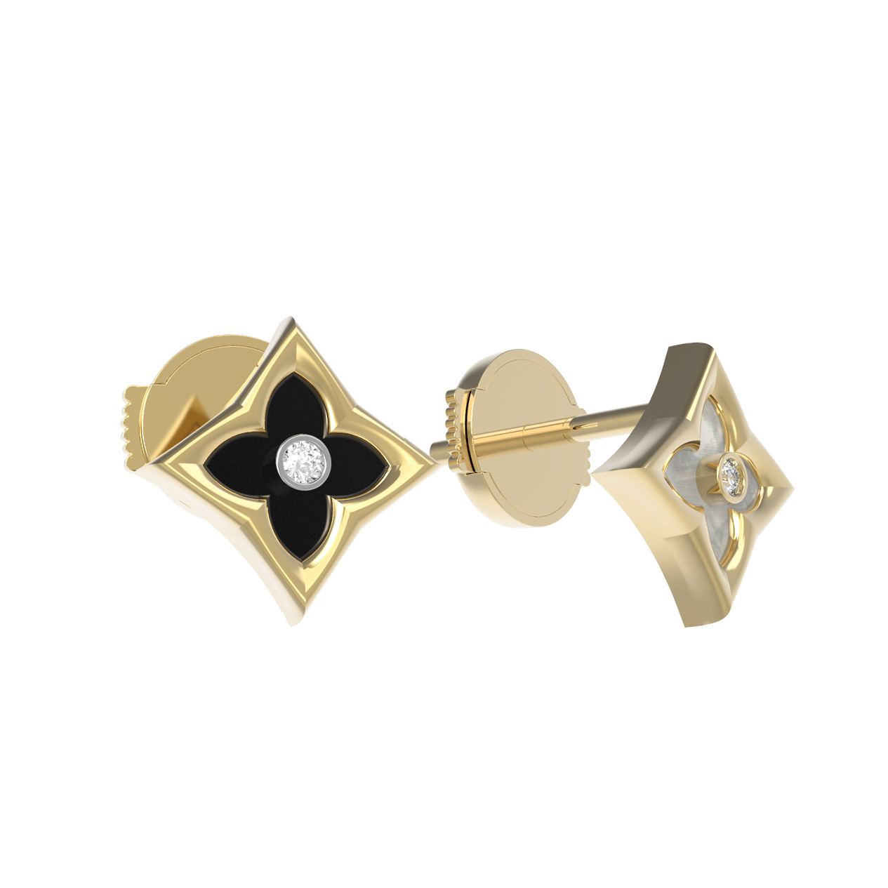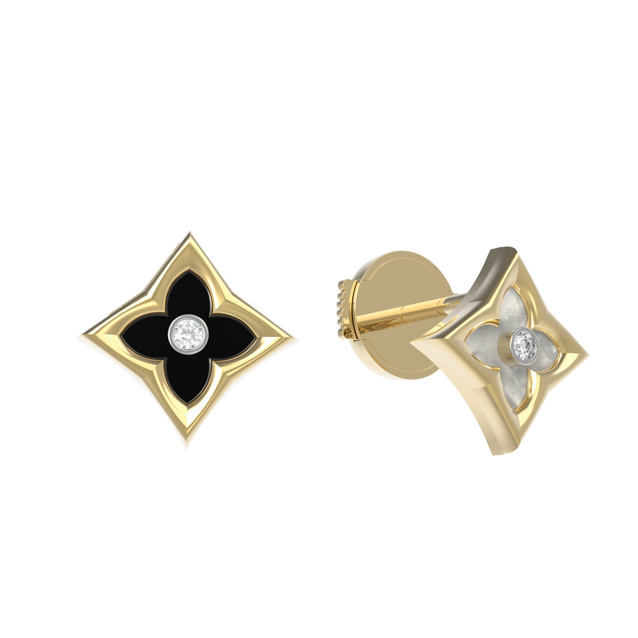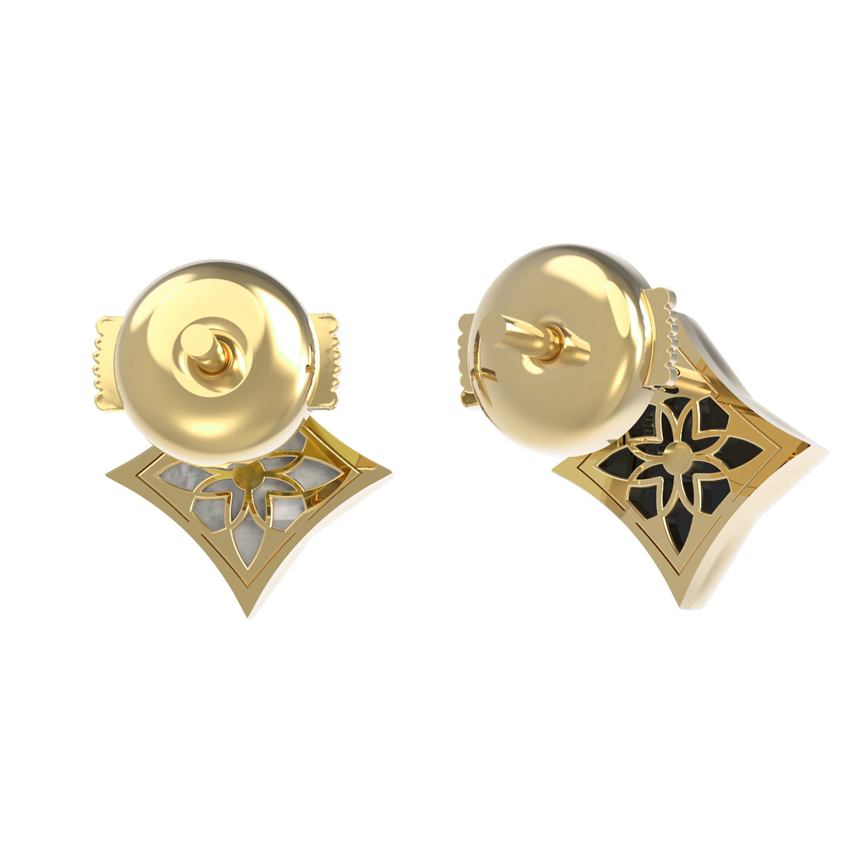 Серьги из лимонного золота c бриллиантами, ониксом и перламутром