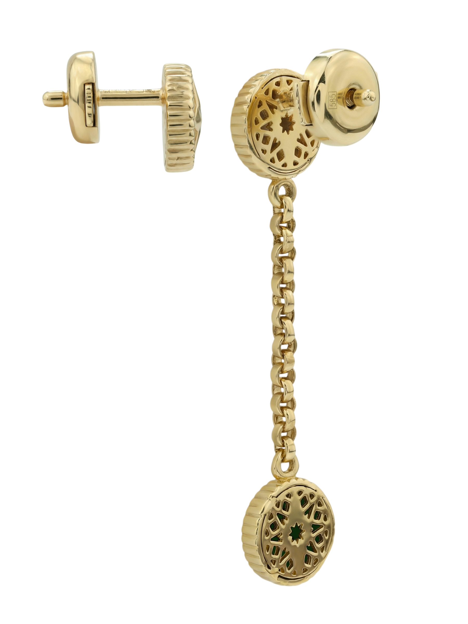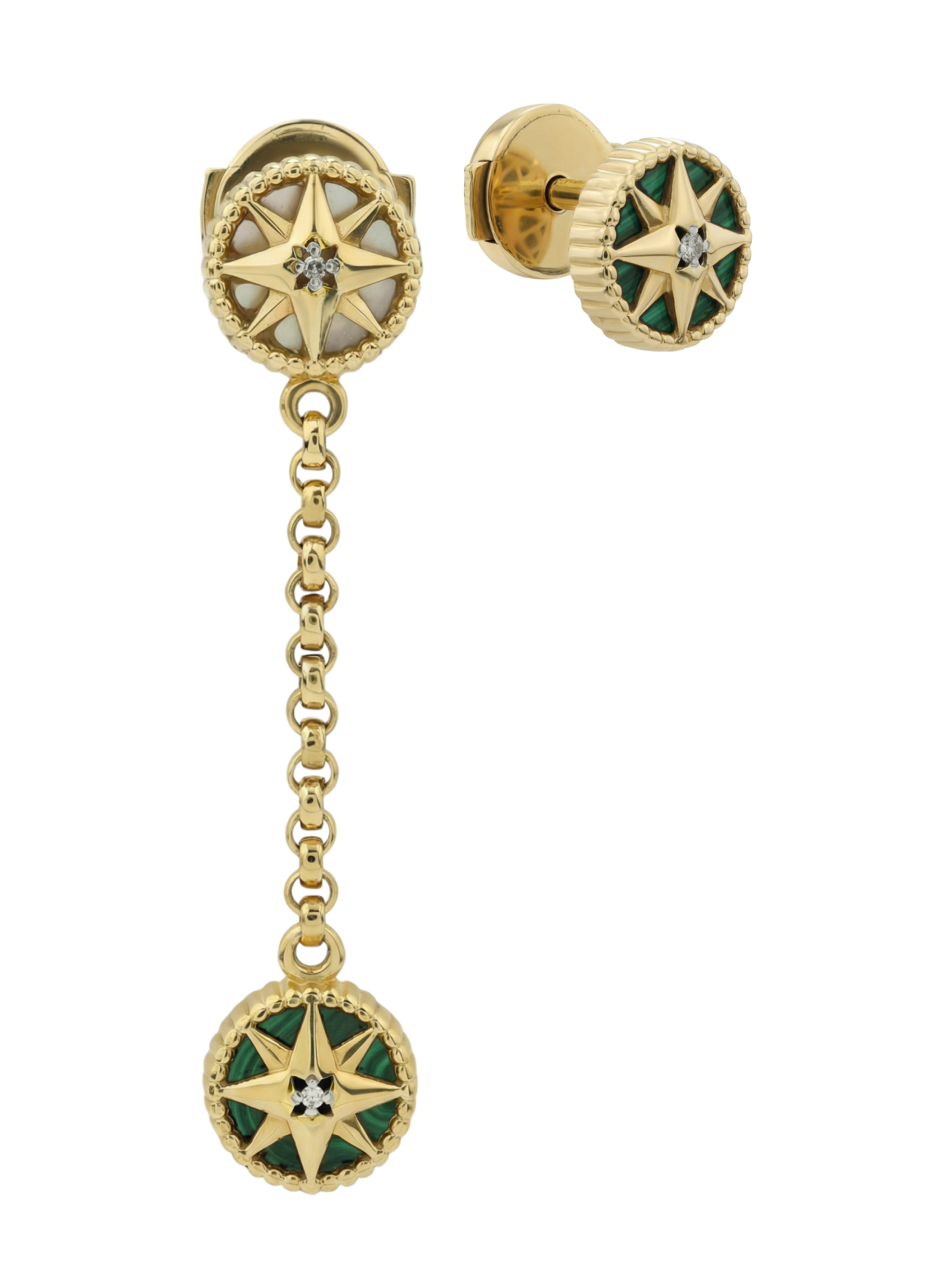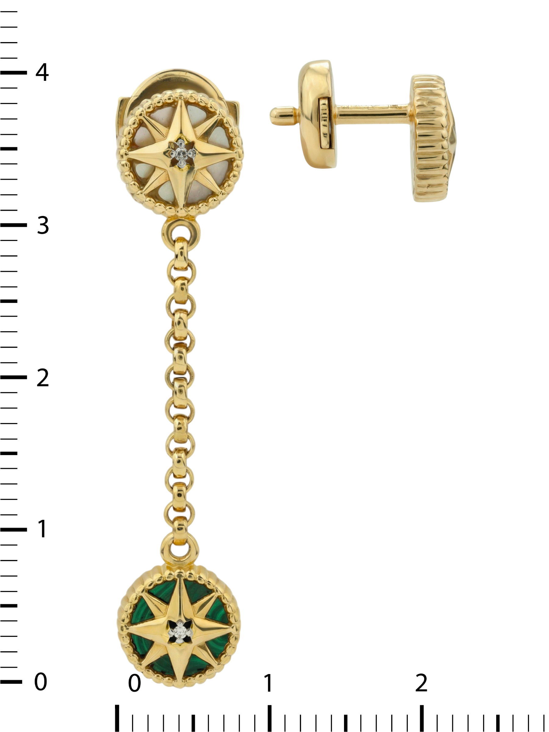 Серьги из лимонного золота c бриллиантами, малахитом и перламутром