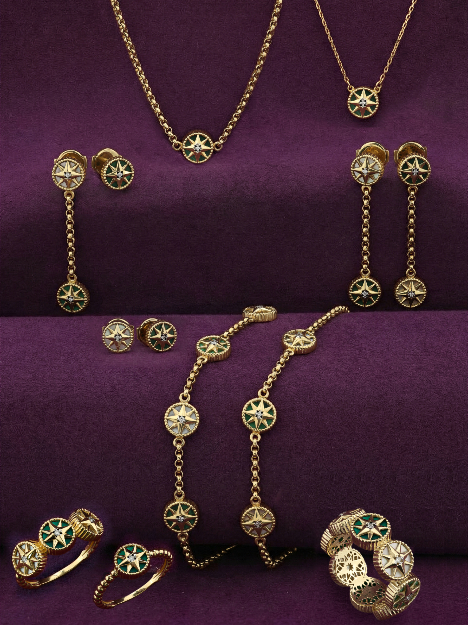 Серьги из лимонного золота c бриллиантами, малахитом и перламутром