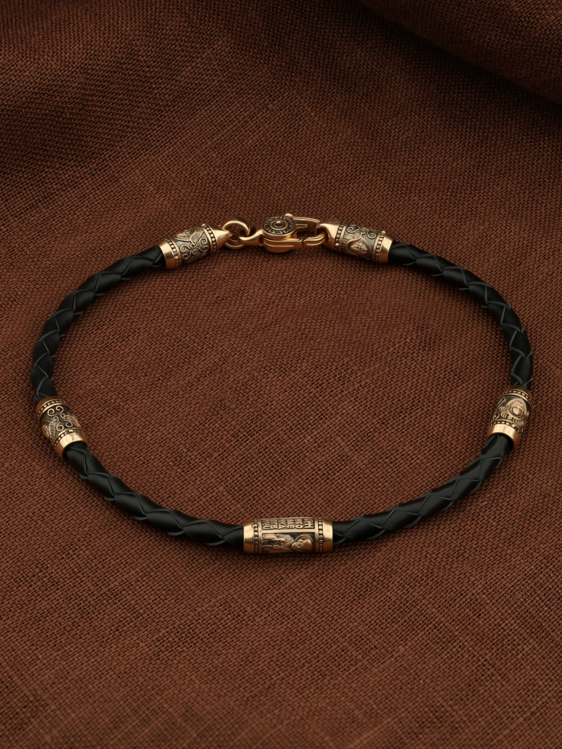 Браслет из золота c кожаным шнурком
