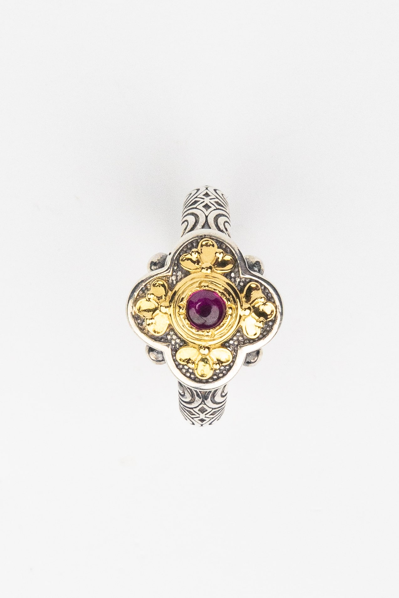 Кольцо из серебра и золота c рубином и рубином