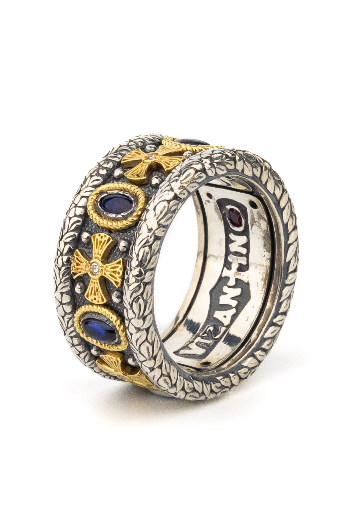 Кольцо из серебра и золота c бриллиантами, сапфиром и рубином