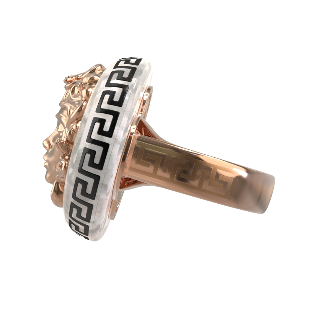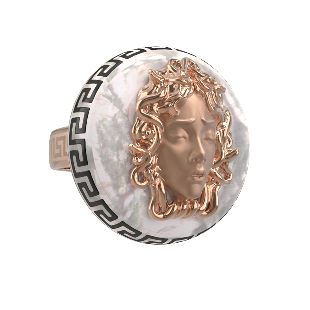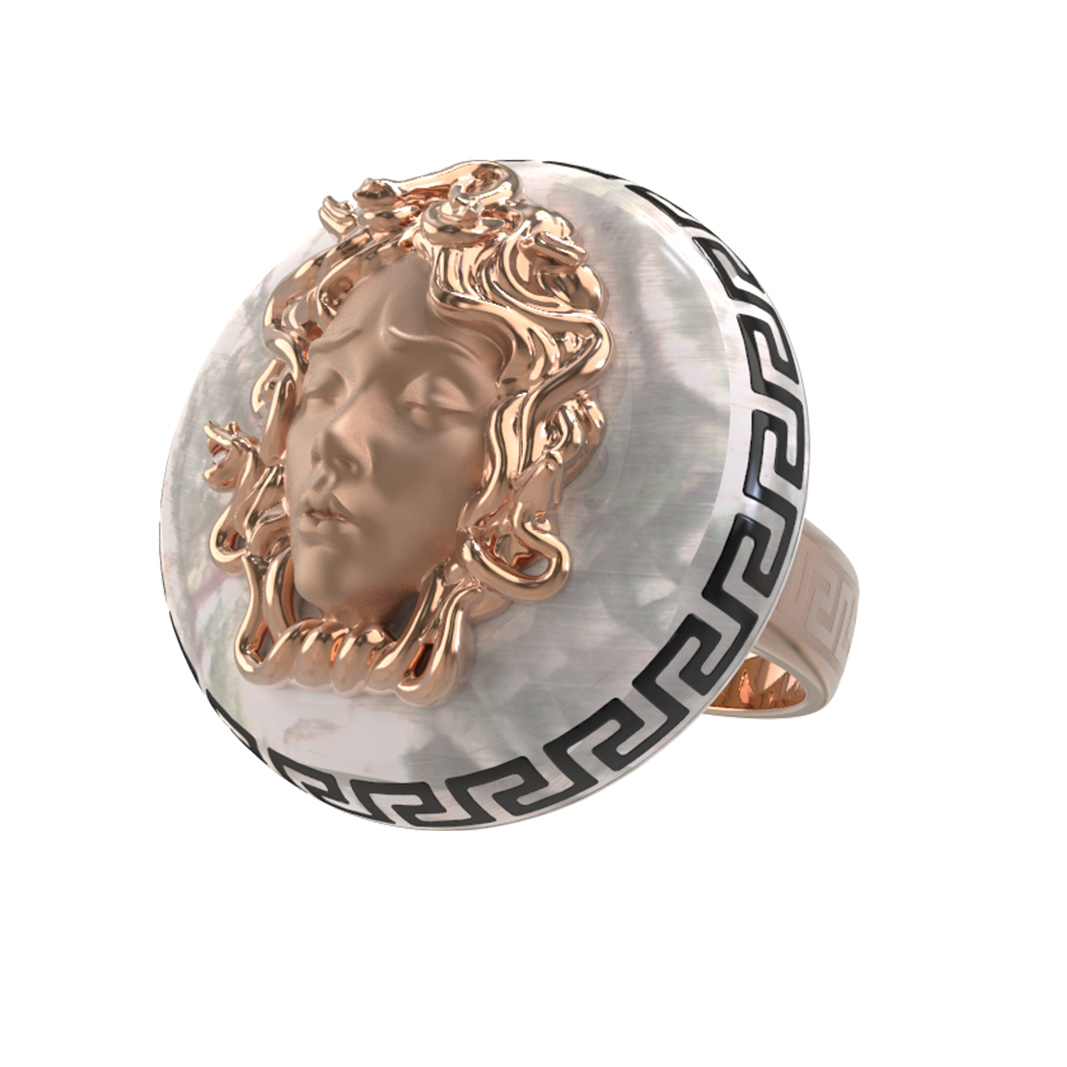 Кольцо из золота c эмаль и перламутром