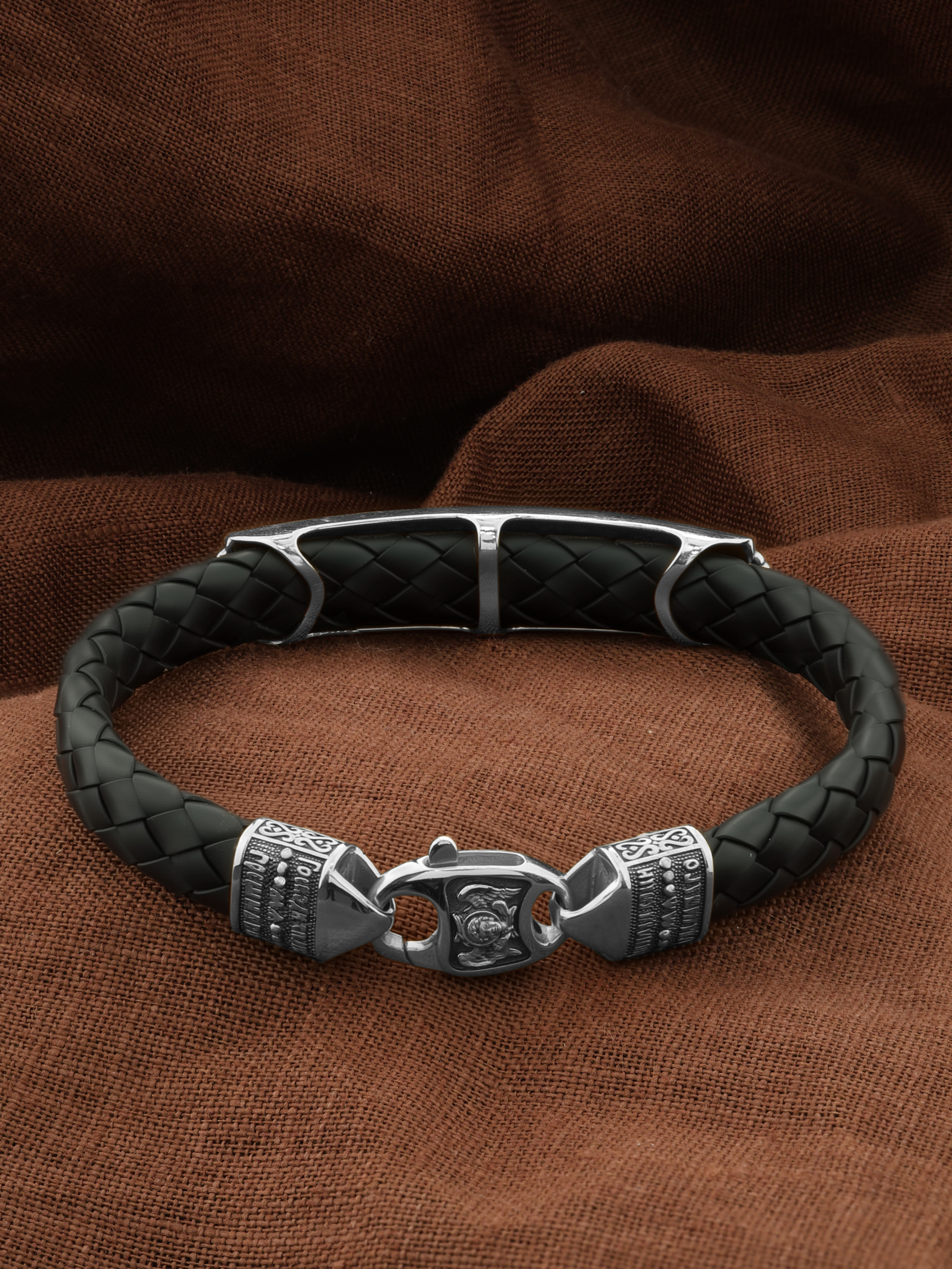 На основном звене браслета написана молитва: «Живый в помощи Вышняго, в крове Бога Небеснаго водворится. Речет Господеви: Заступник мой еси и Прибежище мое, Бог мой, и уповаю на Него.»