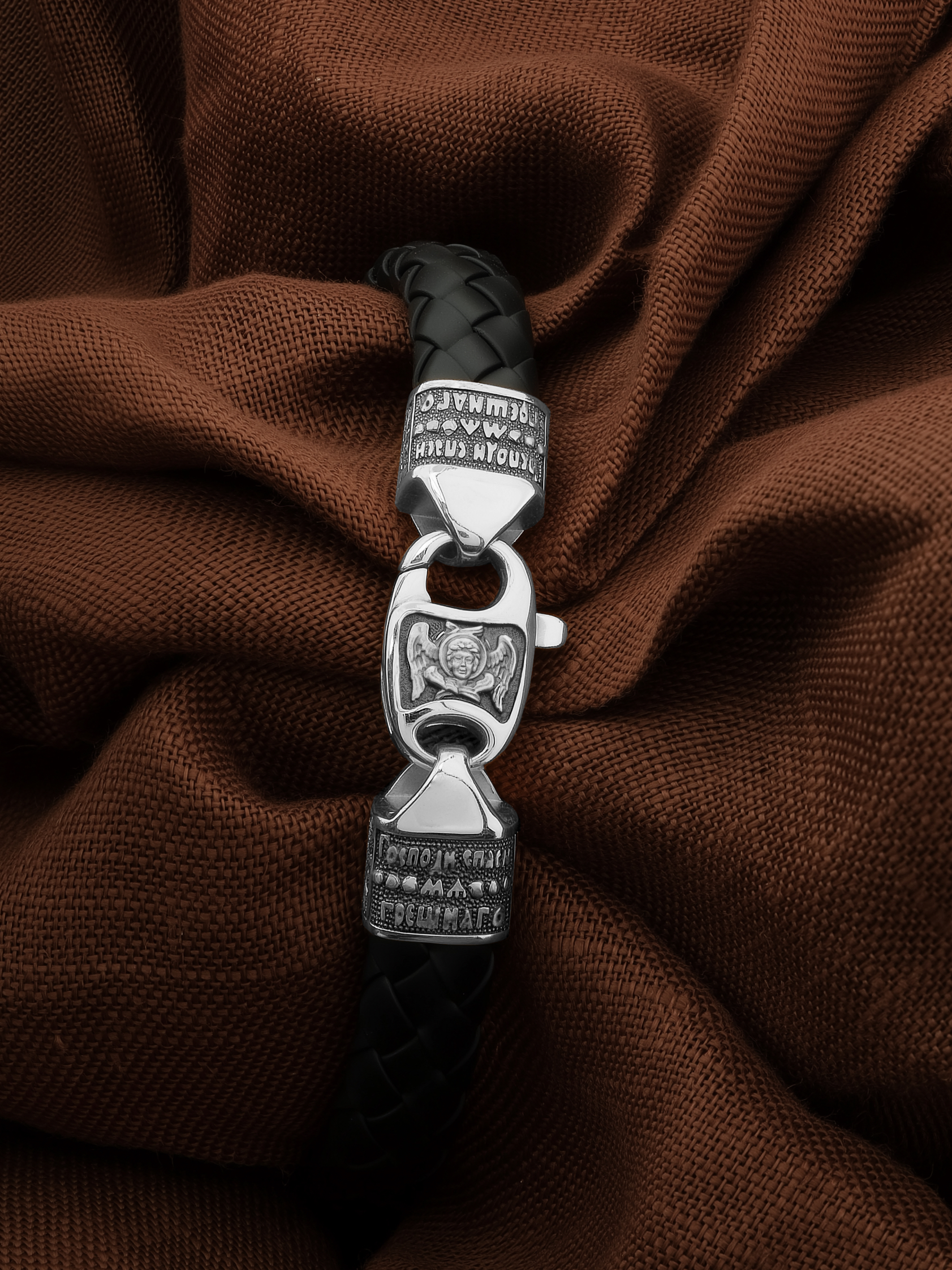 На концах расположены концевики с молитвой: «Господи, спаси мя грешного». Соединяет концевики замочек-карабин в форме рыбки. На замочке изображен шестикрылый Серафим — самый приближенный к Господу Ангел.