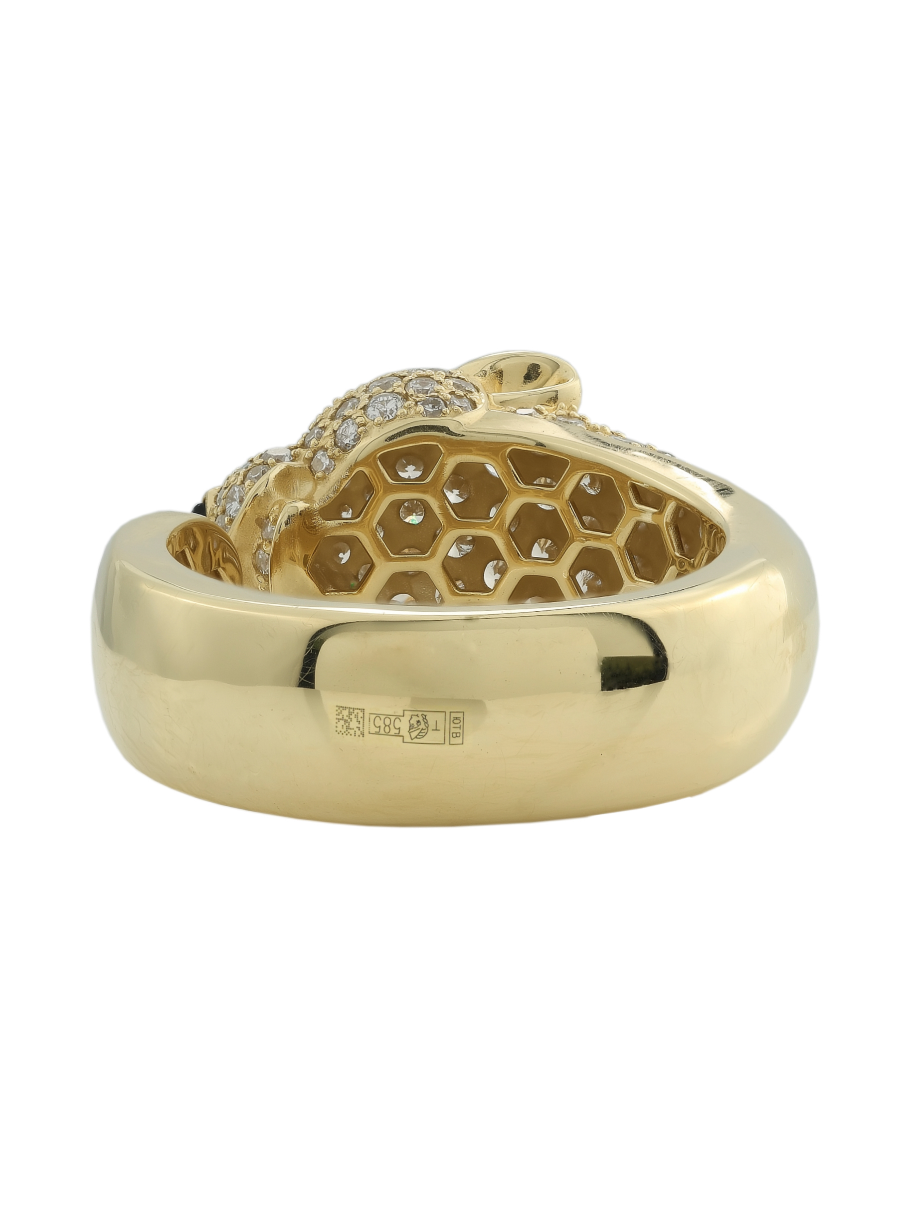 Кольцо из лимонного золота c бриллиантами, изумрудом и ониксом