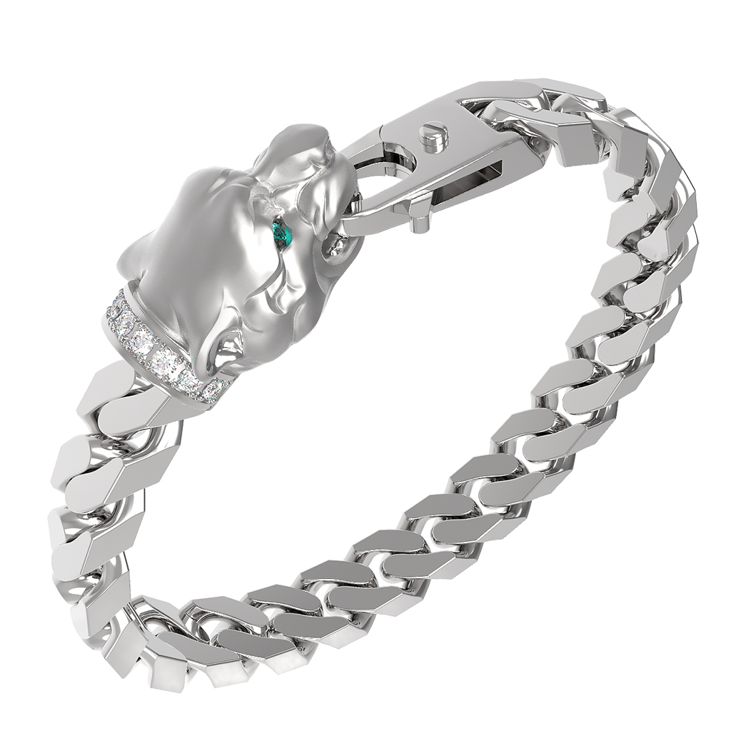 Браслет из белого золота c бриллиантами и изумрудом