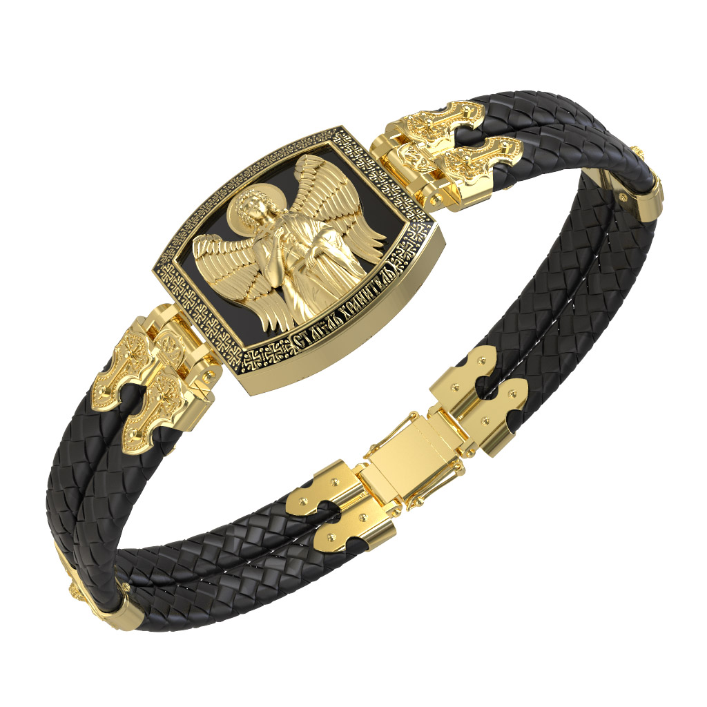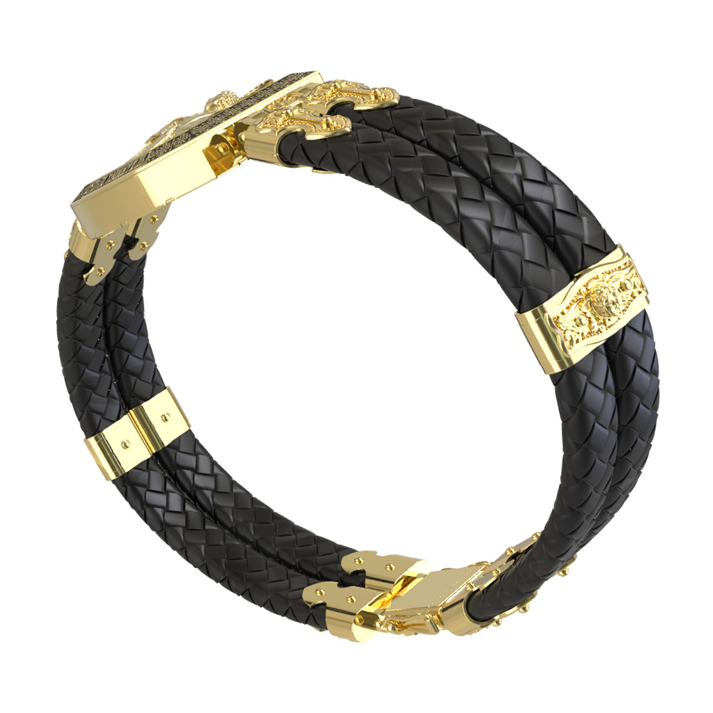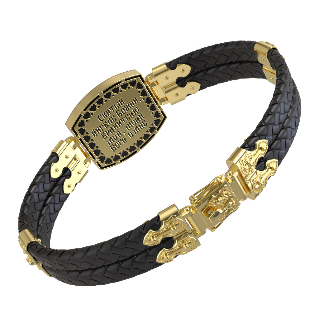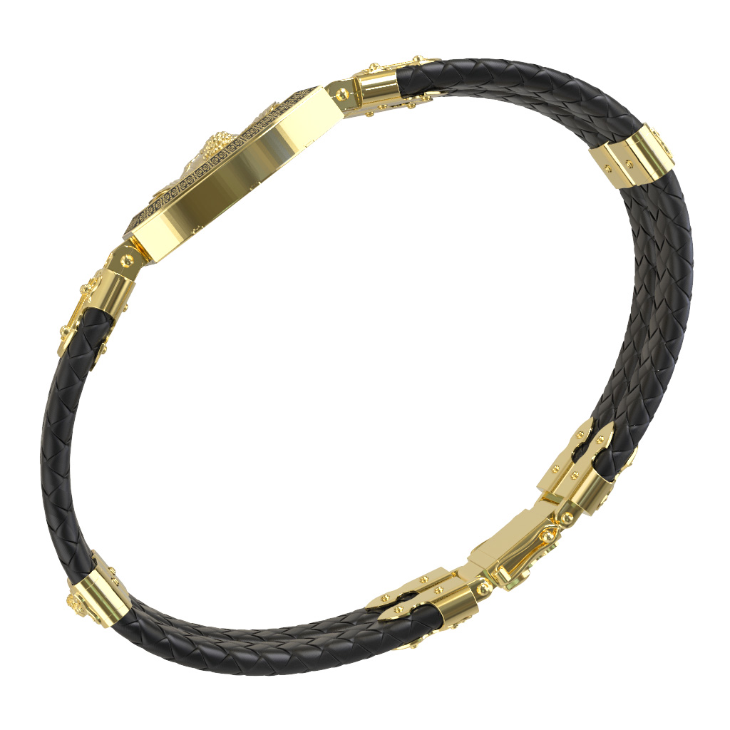 Браслет из лимонного золота c эмаль, шнурком и ониксом