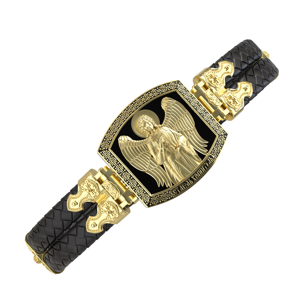 На лицевой стороне основного звена изображён Святой Ангел-Хранитель. Ангел Хранитель — это Ангел приставляемый Богом к человеку при крещении для охраны и помощи в добрых делах. Он невидимо находится при человеке на протяжении всей его жизни, если человек сохраняет в себе любовь к Богу и истинную веру перед Ним. Ангел-Xранитель делают для нас все, что служит к истинному нашему благу и спасению. Невидимо пребывая при нас постоянно, он, руководствуя нас ко спасению, не только по нашему желанию таинственно наставляет нас на все доброе и полезное, не только возносит наши молитвы к Богу, но еще и сам от себя охраняют и защищают нас от врагов видимых и невидимых и ходатайствует за нас пред Богом. Ангел-Хранитель так любит нас, как никто на земле любить не может. Ангел-Хранитель — присный друг наш, незримый тихий собеседник, пресладостный утешитель. Одного лишь каждому из нас он желает — спасения души; к этому он направляет все свои заботы. И если видит нас также заботящимися о спасении, радуется, если же видит нас пребывающими в нерадении о душе своей, скорбит.