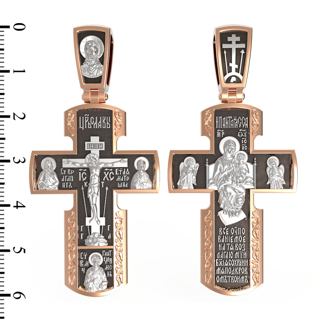 Как действенная помощь в немощах и болезнях был создан крест с образами святых целителей и со знаменитой афонской иконой Божией Матери «Всецарица».