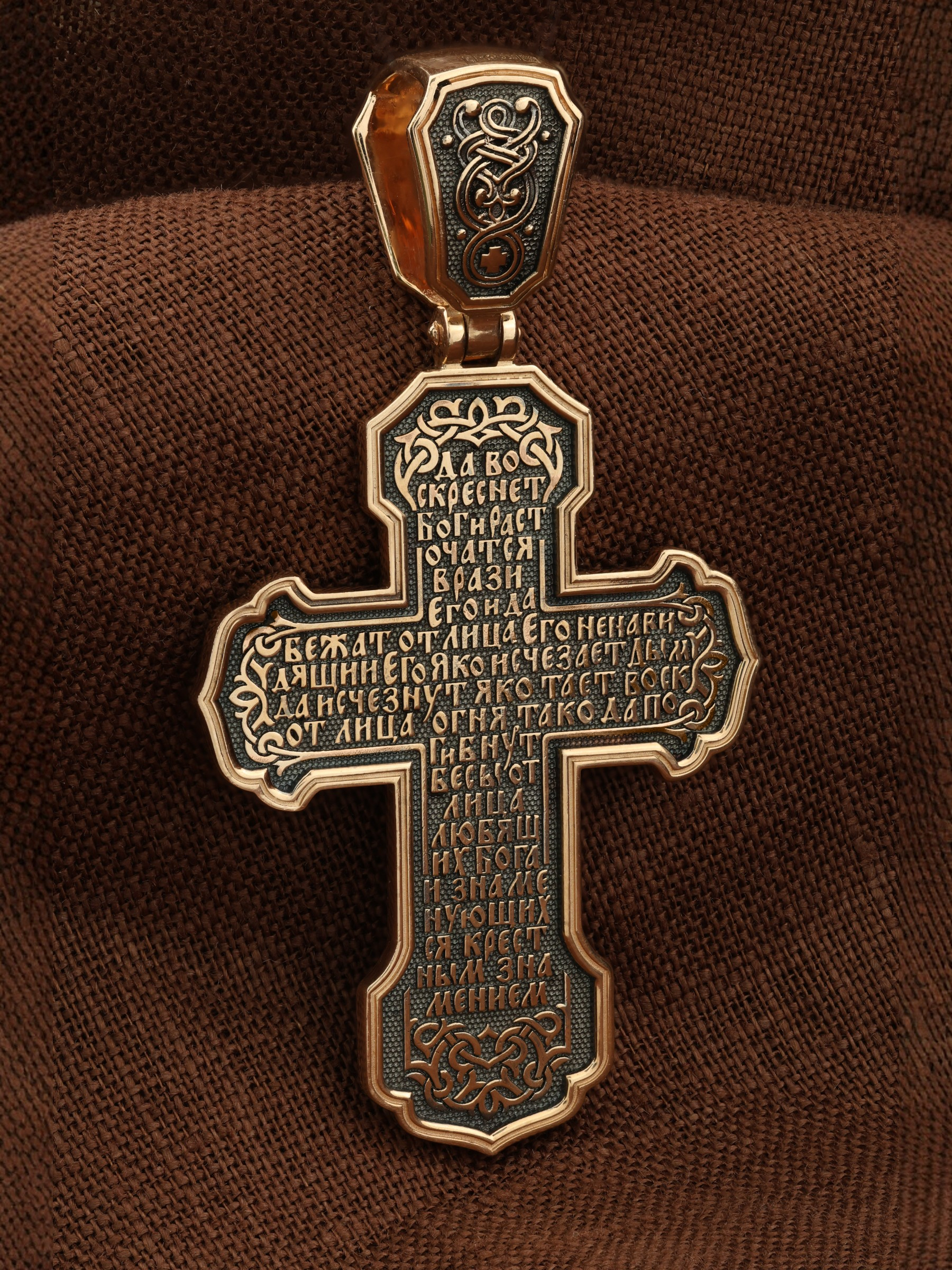 На оборотной стороне креста написана молитва Честному Кресту Господню: «Да воскреснет Бог, и расточатся врази Его, и да бежат от лица Его ненавидящии Его. Яко исчезает дым, да исчезнут; яко тает воск от лица огня, тако да погибнут беси от лица любящих Бога и знаменующихся крестным знамением…».