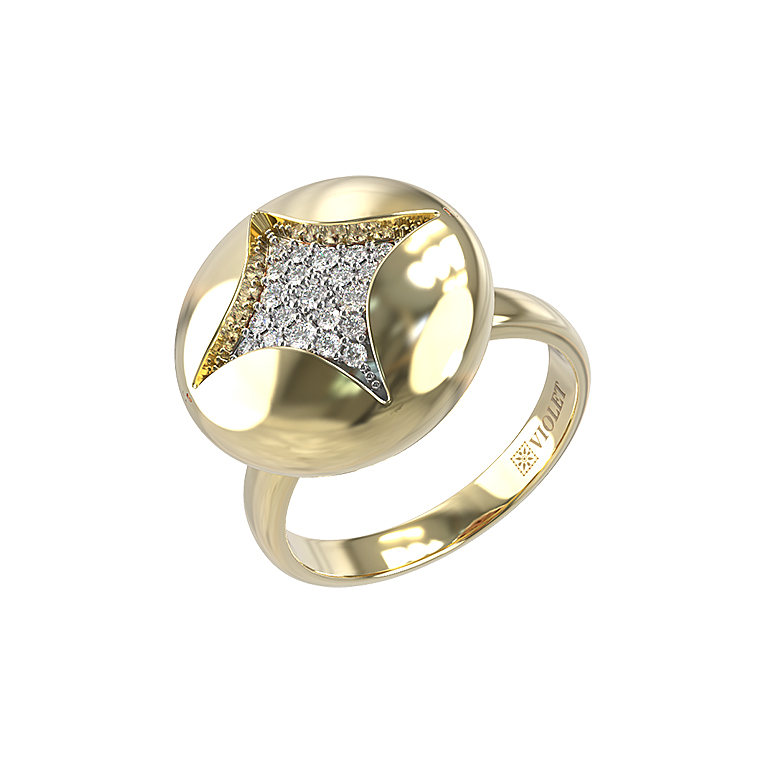 Кольцо из лимонного золота c бриллиантами