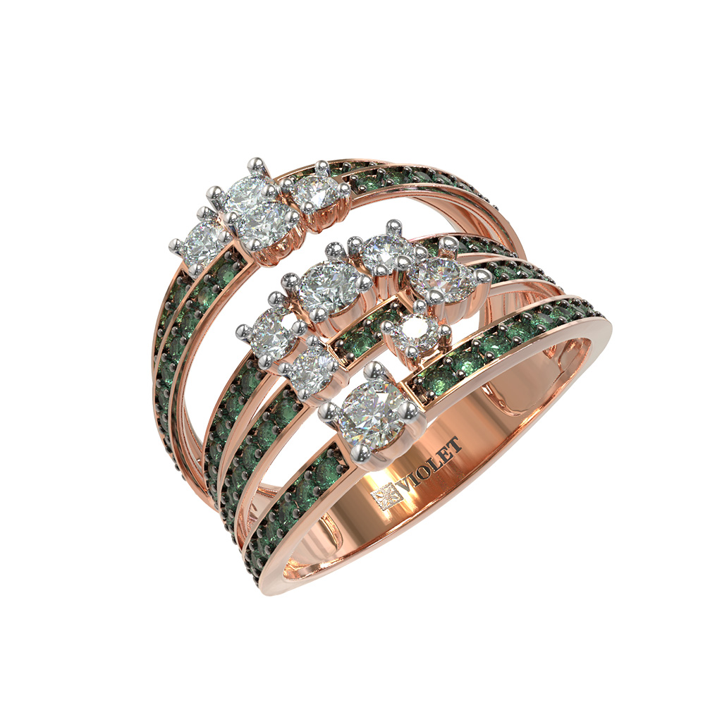 Кольцо из золота c бриллиантами и изумрудом