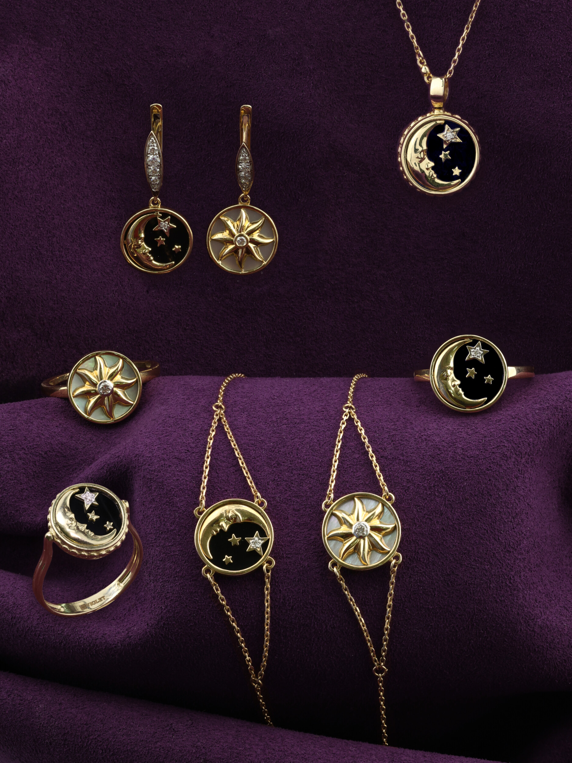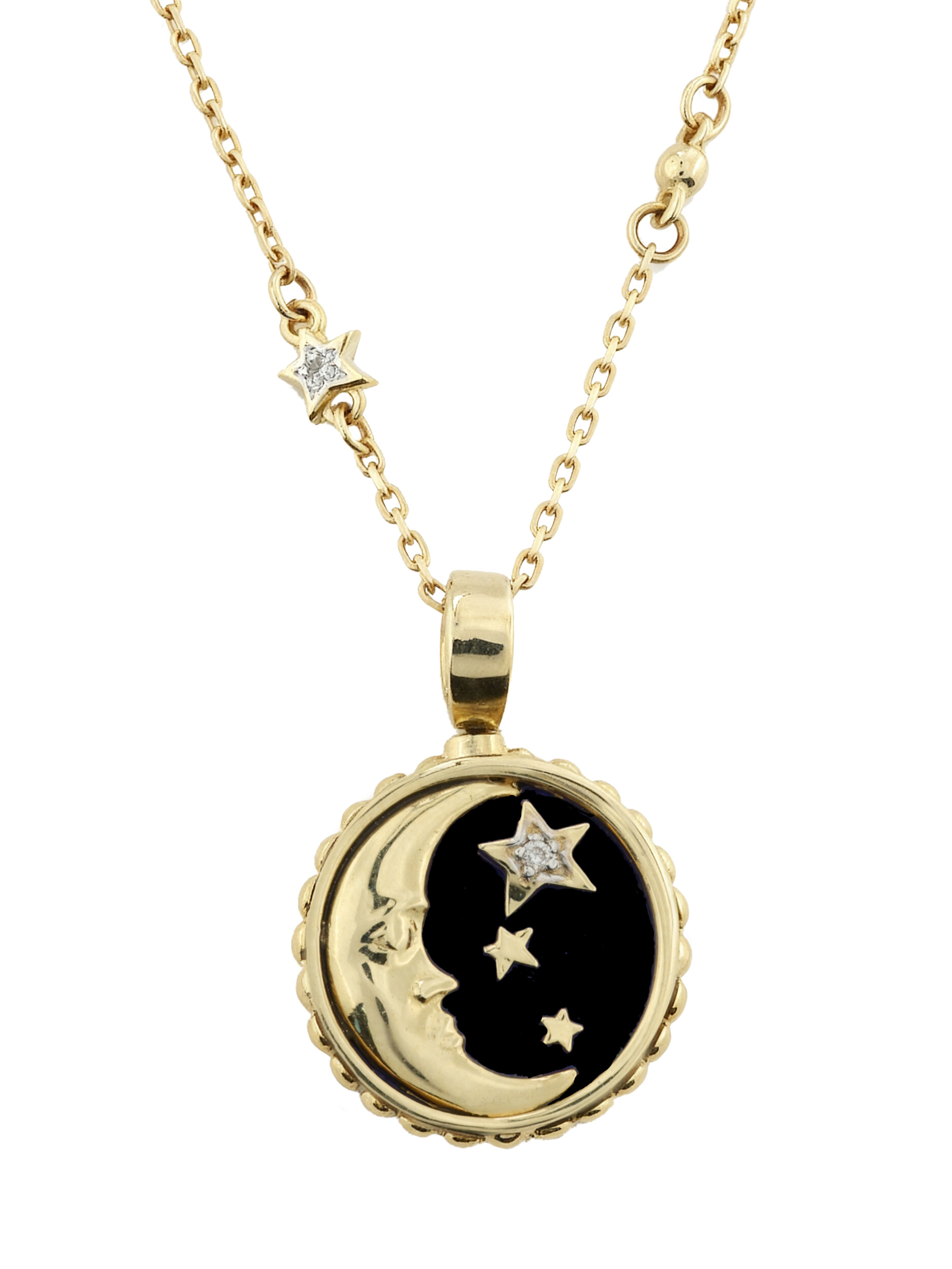 Колье из лимонного золота c бриллиантами, ониксом и перламутром