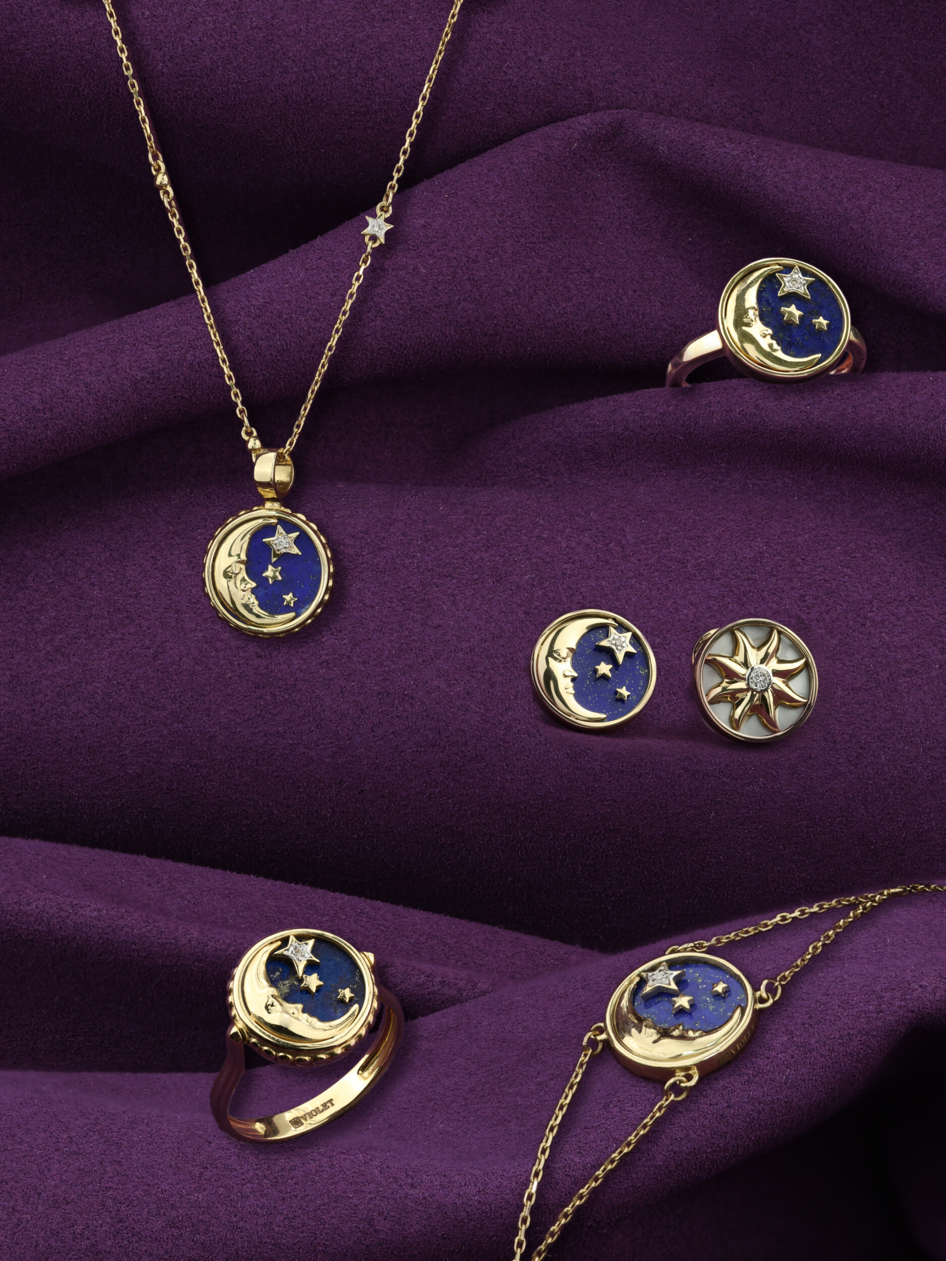 Колье из лимонного золота c бриллиантами, лазуритом и перламутром