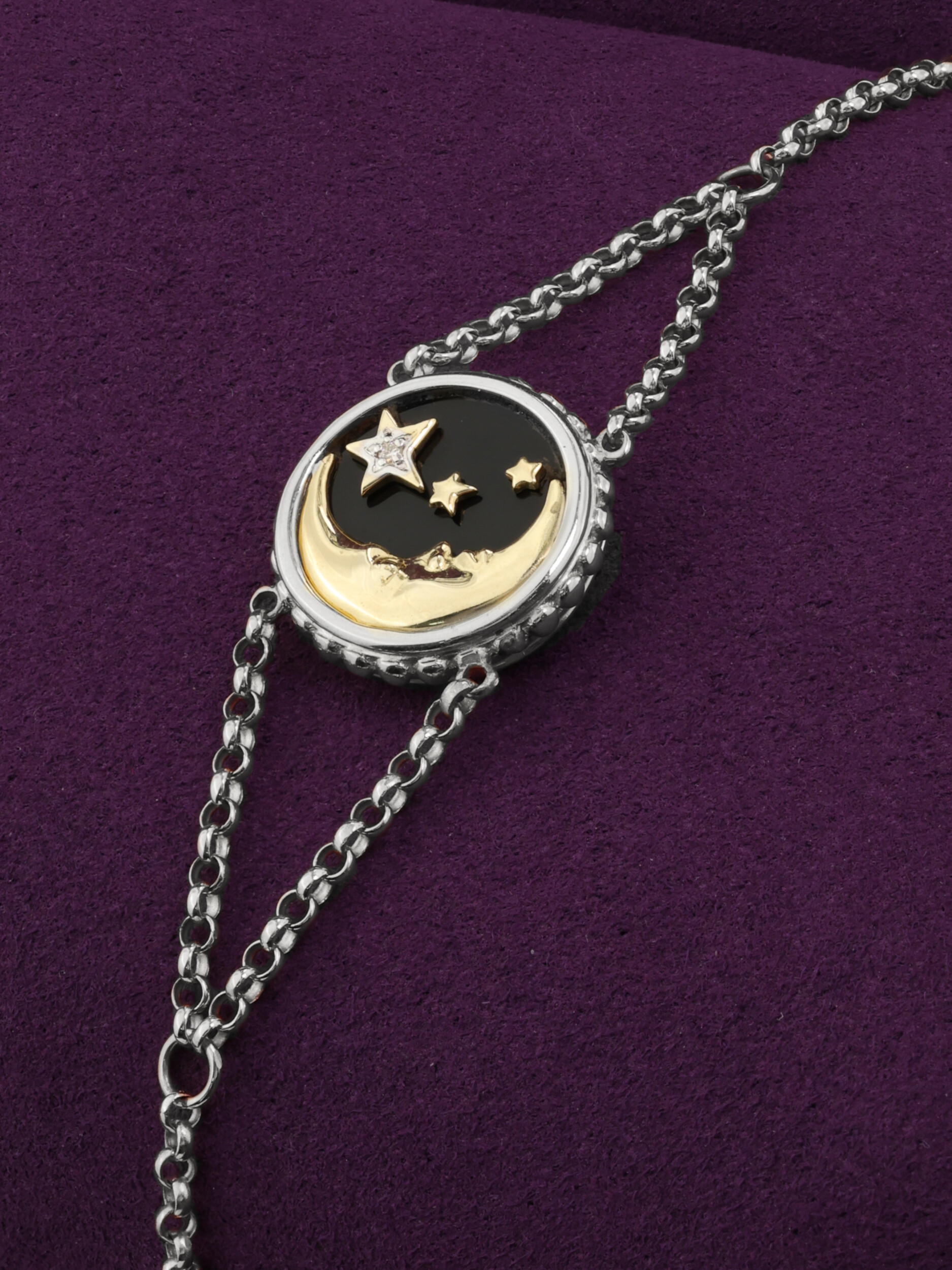 Браслет из белого золота c бриллиантами, ониксом и перламутром