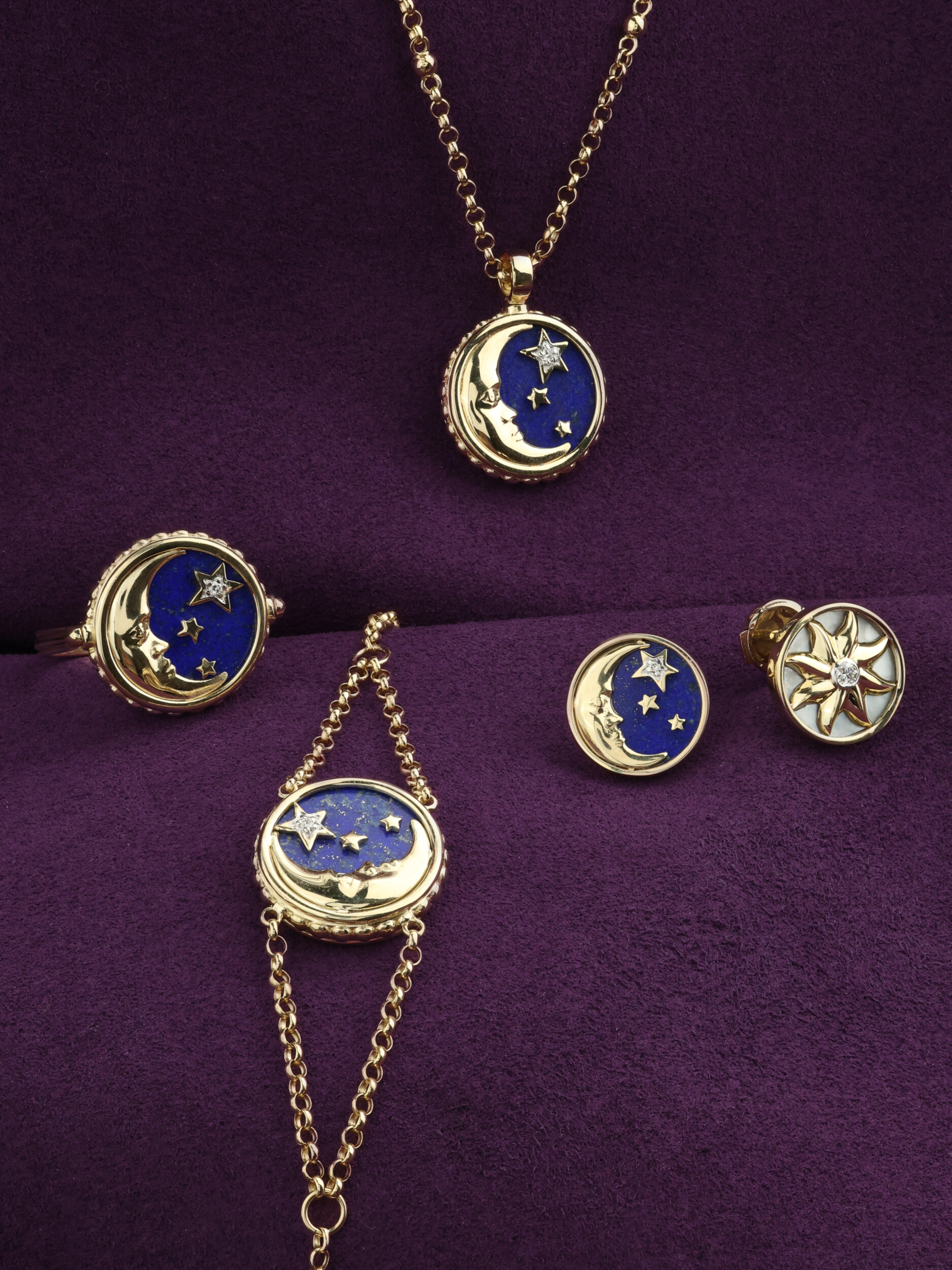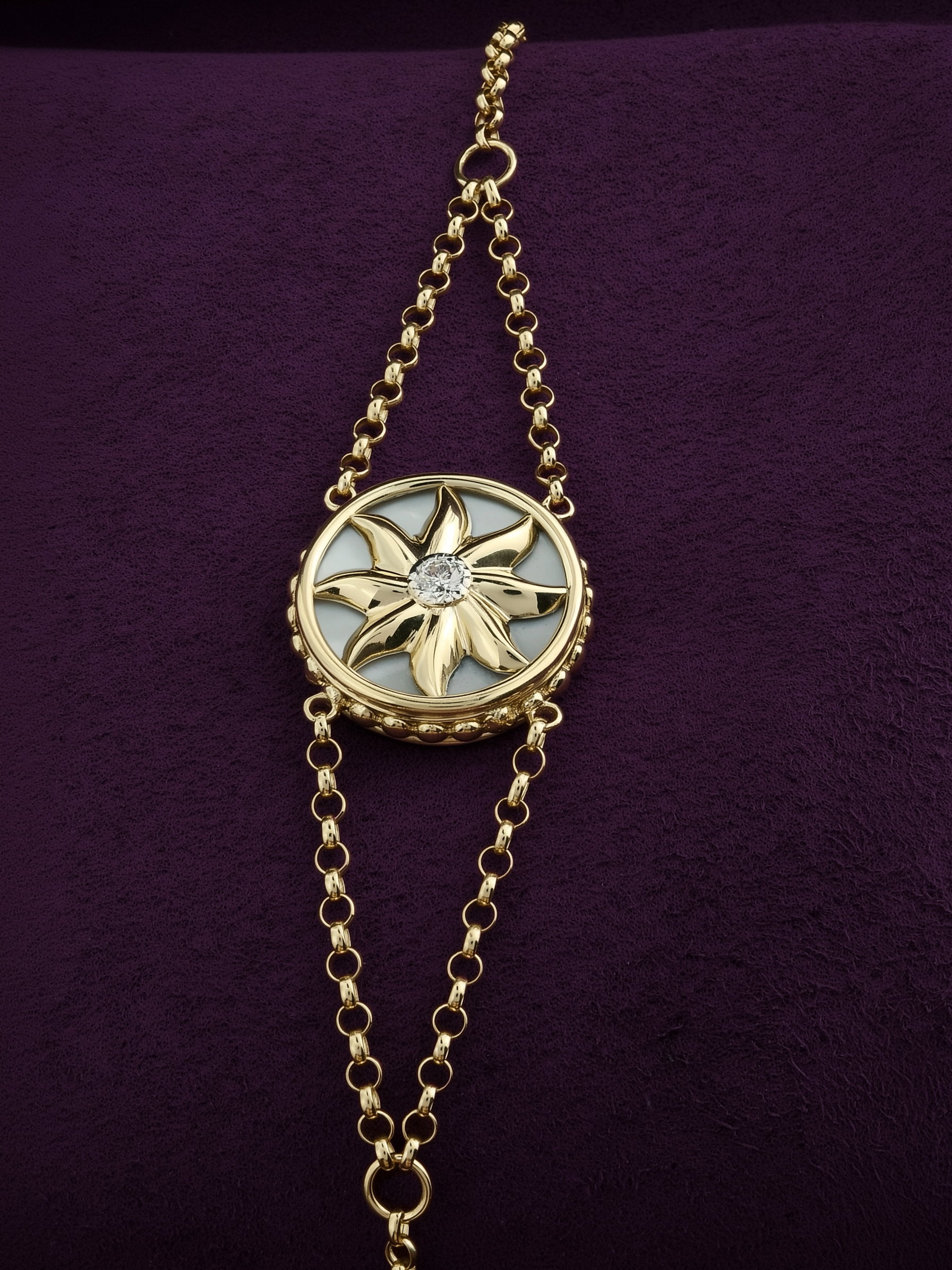 Браслет из лимонного золота c бриллиантами, лазуритом и перламутром