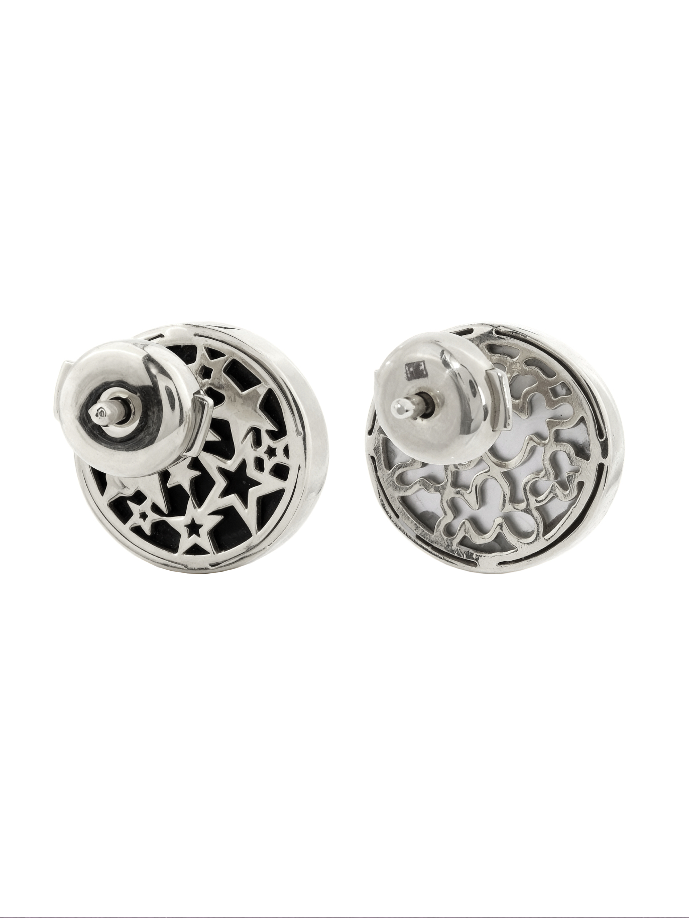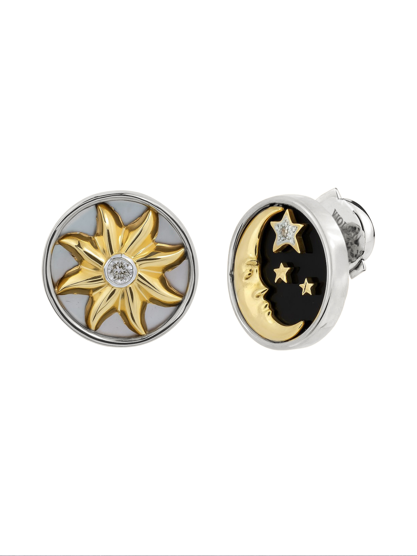 Серьги из белого золота c бриллиантами, ониксом и перламутром